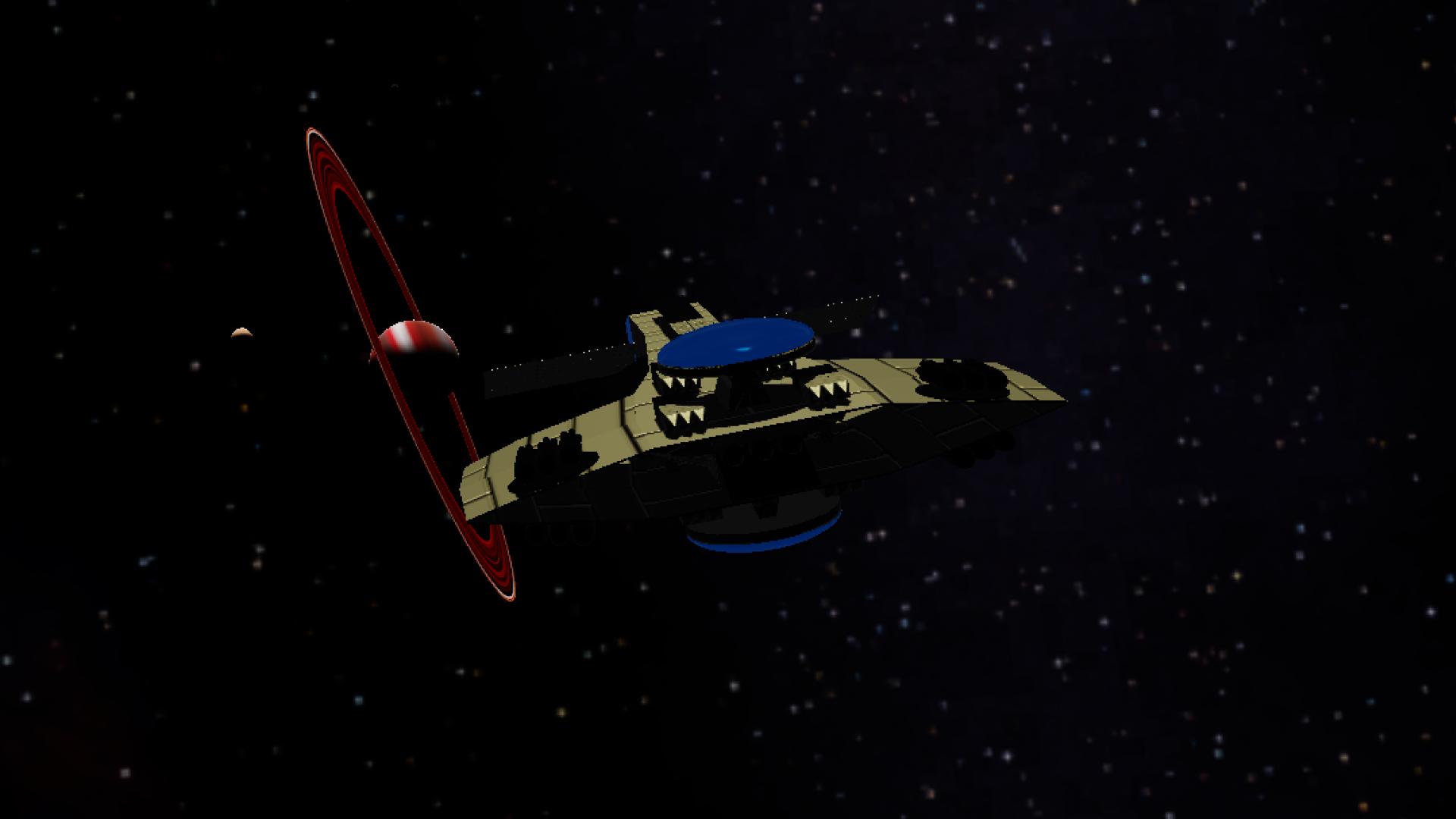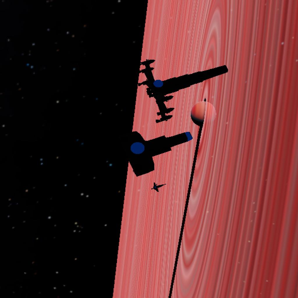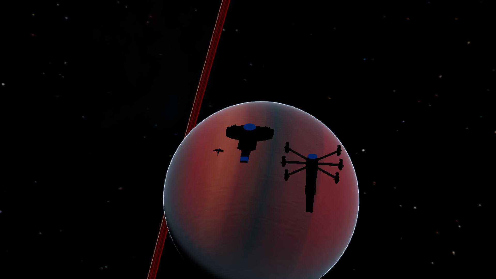 (C)"Ahh...sweet sweet calm, in orbit of Donom. A great red world, such nice rings and a beautifu-"