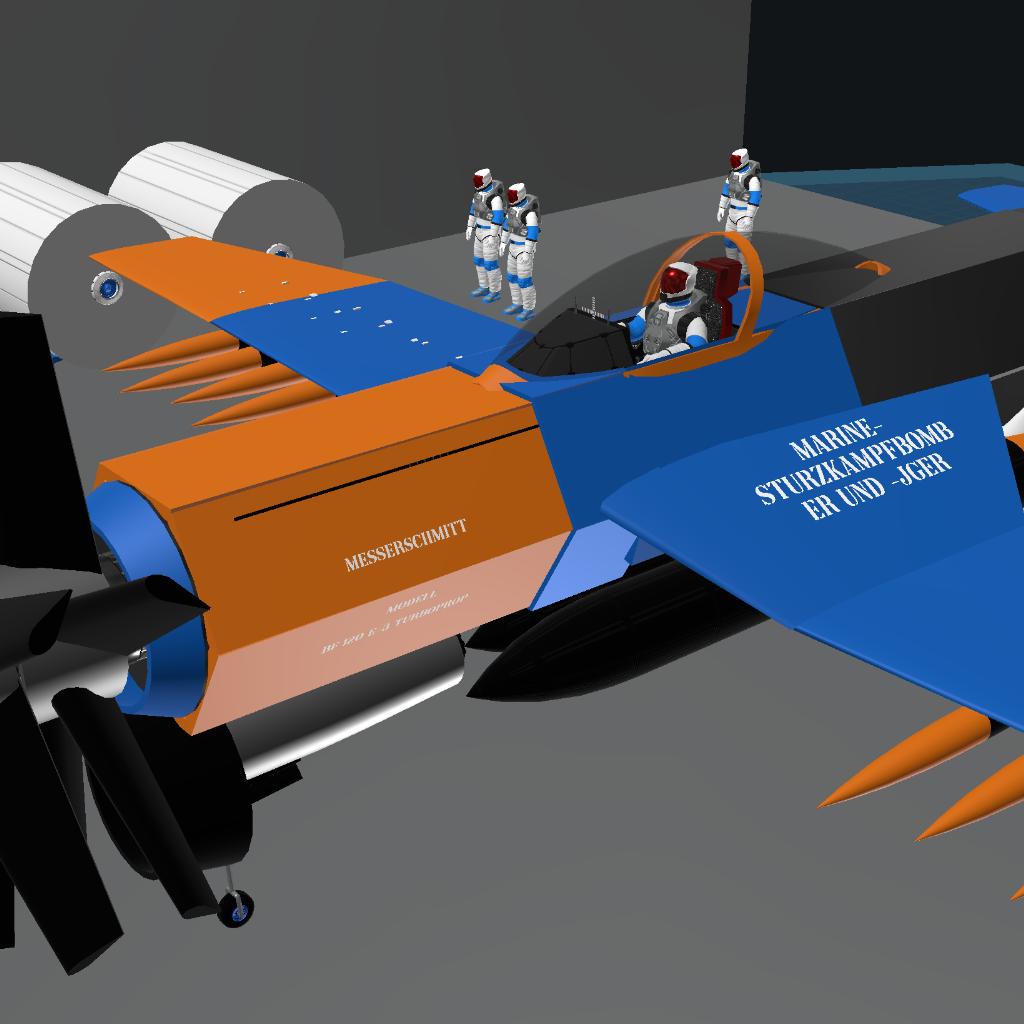 The bf120 E-3 also has thick armor to protect its pilot and all the pilot would need to know in the cockpit. This aircraft has airbreaks and flaps also having propeller pitch controles. The bf120 can hit a speed of mach 1+ and a range of 700+ kilometers and a wide arsenal for naval and ground attacks for the luffwaffa.