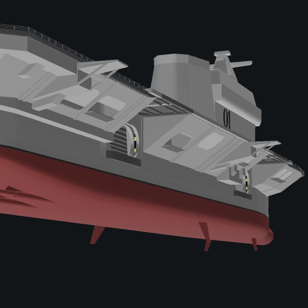 The Usrelian Navy is proud of presenting a new standard on aircraft carriers. Build having every possible enemy in mind, the ship is the result of almost half a year of work by @Lq11 and me. Originally engineered to carry F-04 Razorblade aircraft, the ship is large enough for it to land and takeoff without cables or catapults. The ramp was made for the same purpose.