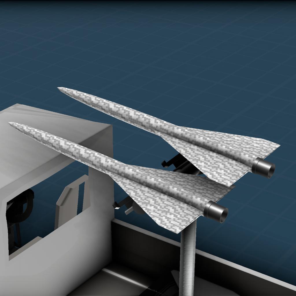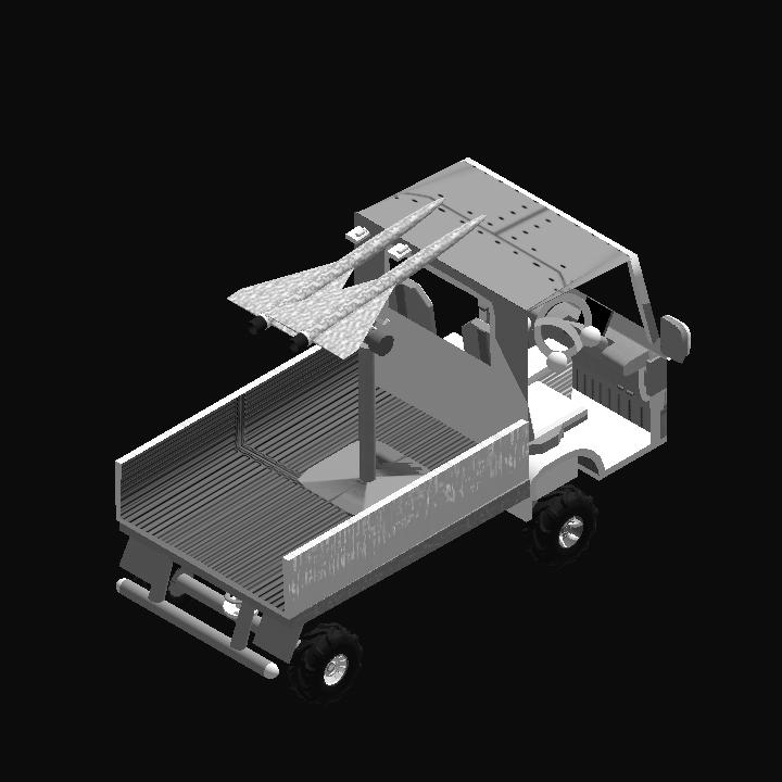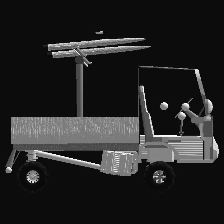 Description: A 1991 Honda Acty is a Kei Truck. It is used for rugged terrain with compact spaces. It has functional steering and shifter. With a unique suspension to give simplicity and tough in land (Don't do it in high speed). These missiles uses two cameras each to spectate where does your missile go. This vehicle is door-less to easy access for Droods to come in. For anyone's who's concerned about the front crash safety, don't worry it only go 70 km/h max speed.