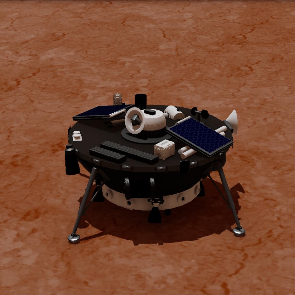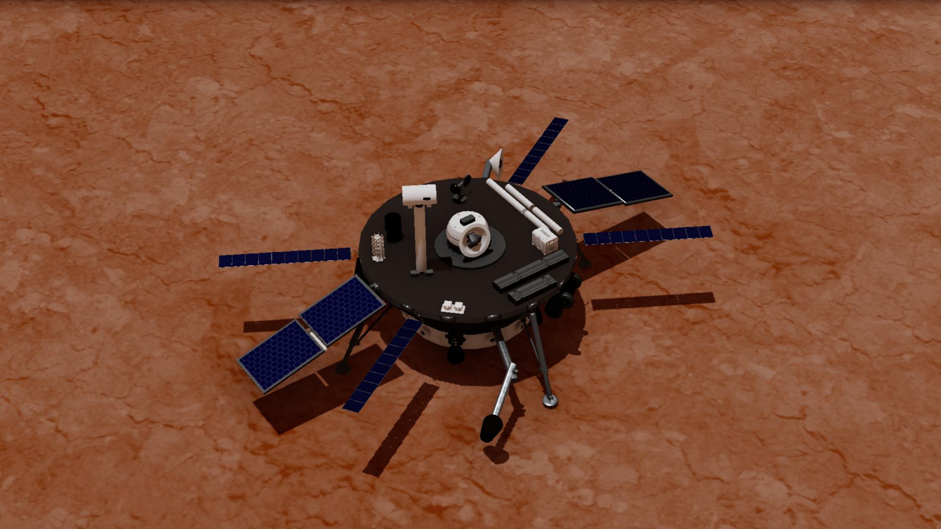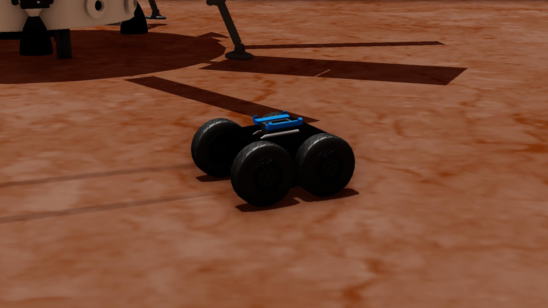 este es el M.L.E una máquina que aterrizar en planetas rocosos para estudiar sus rocas tiene dos antenas, una de ellas se mueve con slider 1 también viene con otro amigito un mini Rover,