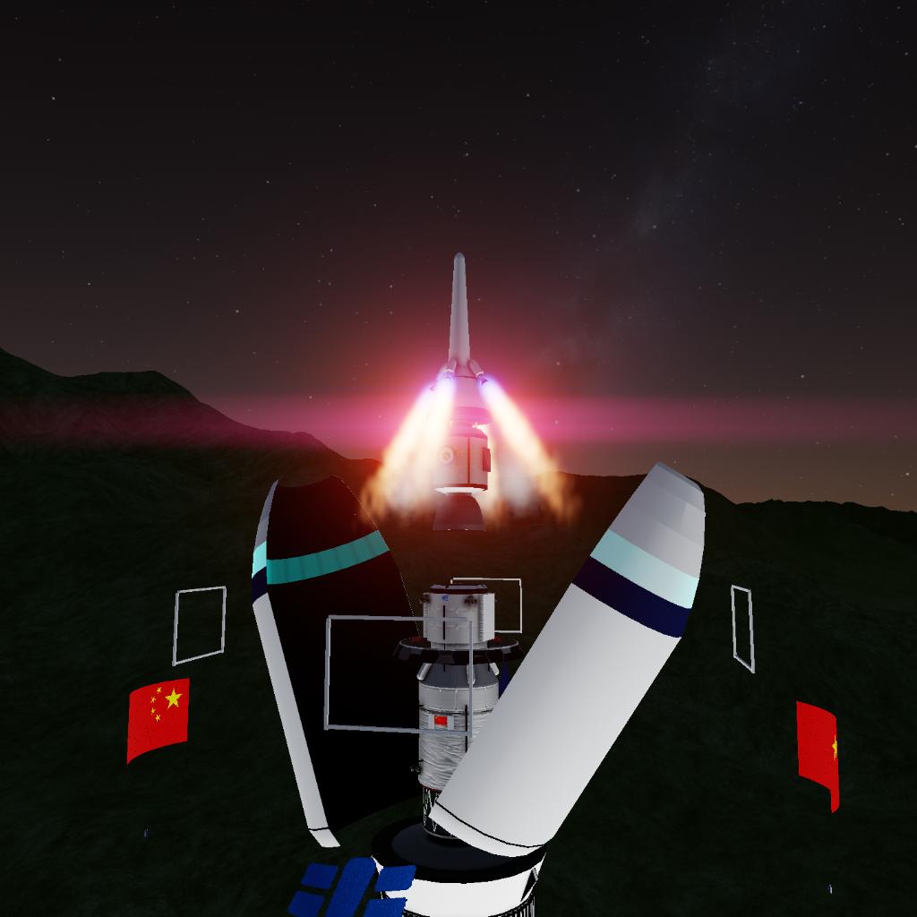 "This is a rocket forged over a millennium. We depart from the earth, challenging the gravity of the core, solely for the brilliant dream of human spaceflight. A dream from the sky is destined to be pursued towards the sky. What we need to do is embark on a Long March in a direction where there was originally no path." A fictional heavy-lift launch vehicle, the "CZ-11F" crewed rocket, derived from the Long March 11B, features a three-stage design and a 260m thrust monster. Its payload capacity for low Earth orbit, geosynchronous Earth orbit, and lunar transfer orbit is no less than 100 tons. The carried payload is the crewed spacecraft "Dream Boat-A (fictional)", which can turn humanity's dream of spaceflight into reality. The rocket is also equipped with an escape tower. To use it, the thrust at the bottom left corner must be fully charged in advance, and "Activity Group-1" activated. The escape tower will pull the crew return capsule out of the fairing, and then the parachute will be activated to make the return capsule land safely. We hope to bring you a brand-new experience.