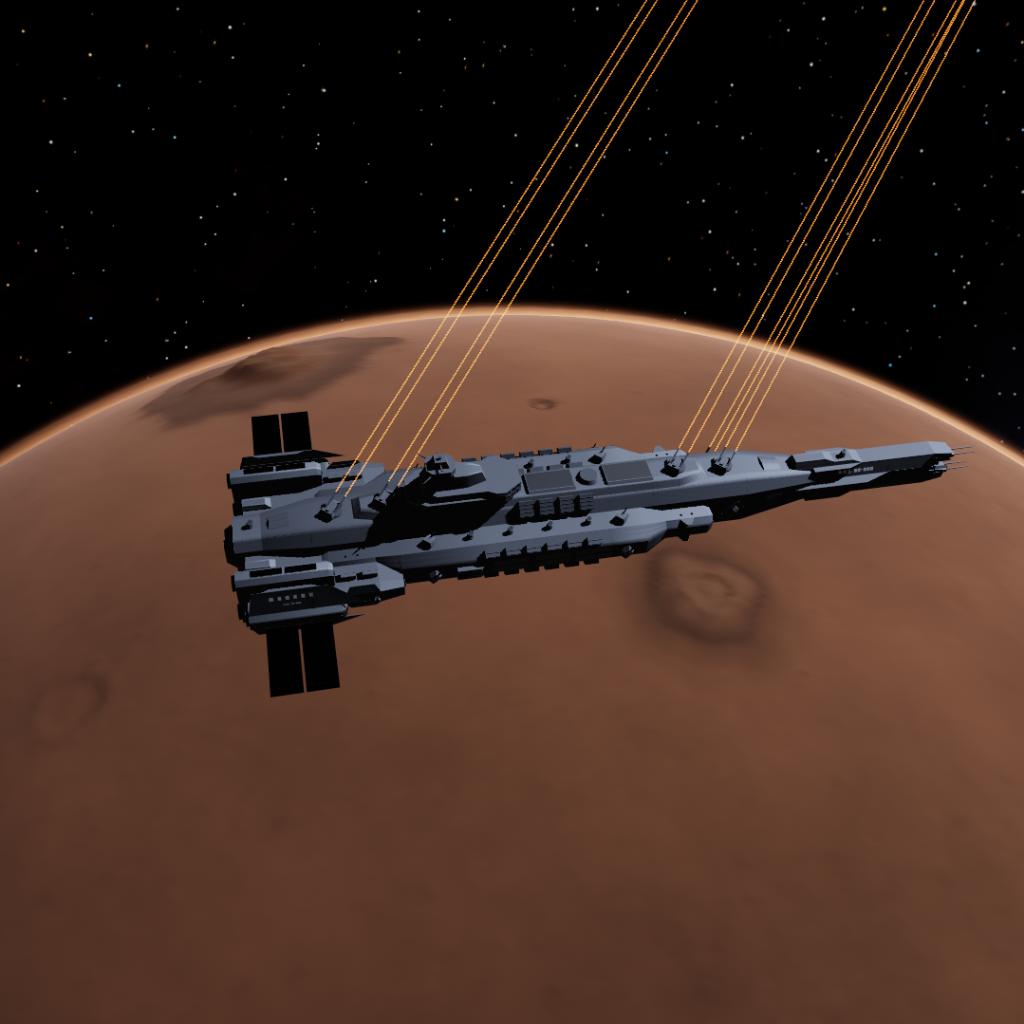 - Hangar capacity for 12 space fighters (This version is not equipped)