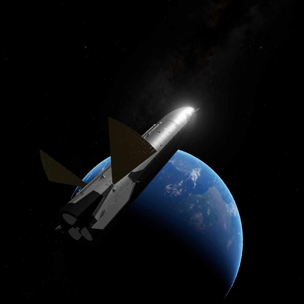 Some improvements have been made to the existing starship for landing on planetary systems, such as fan-shaped solar panels and landing legs. Later, this version will be developed into a manned model and a cargo model with large-sized hatches.