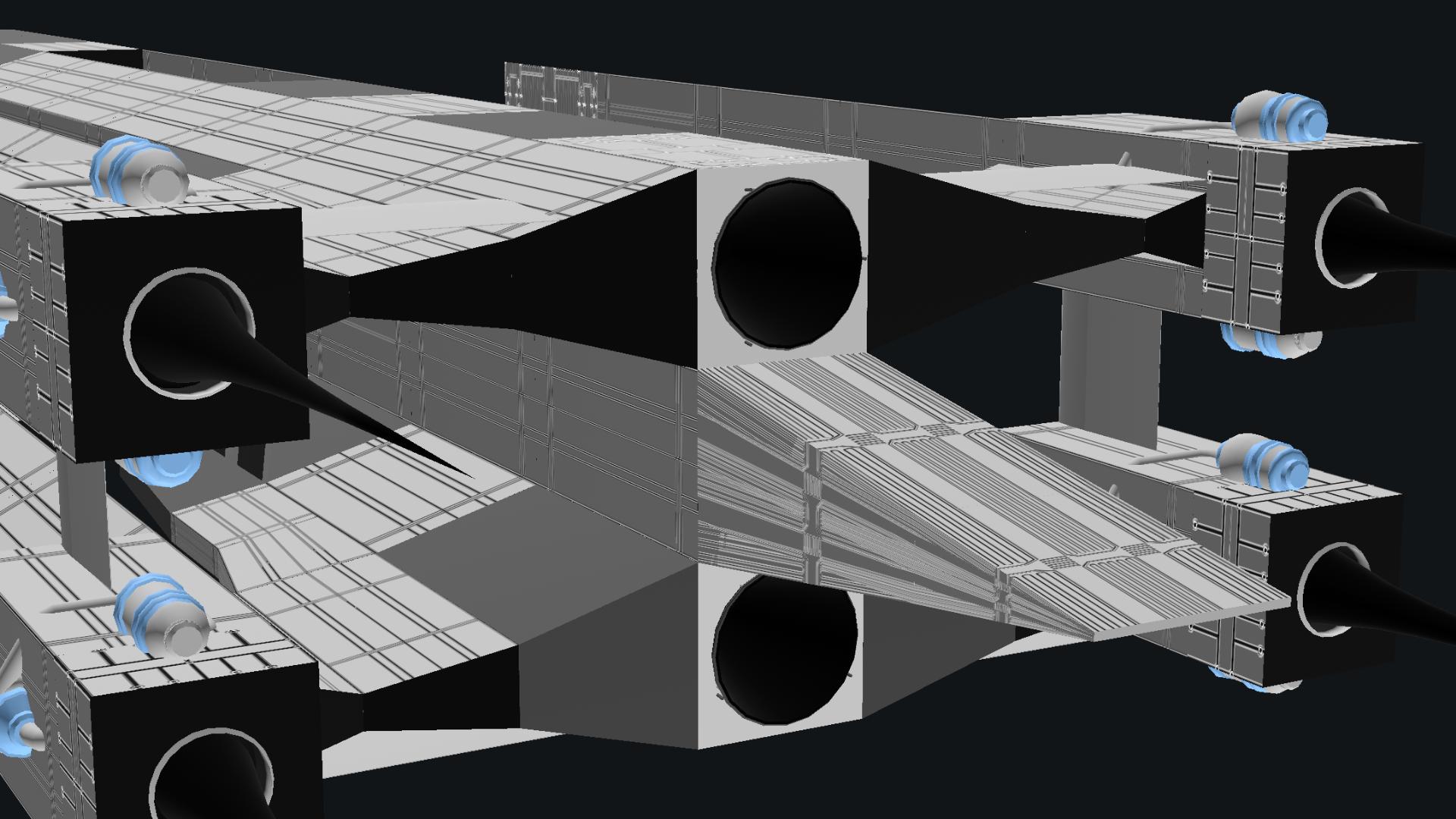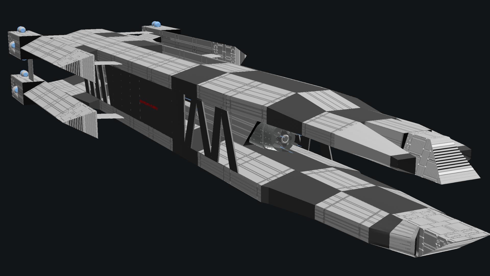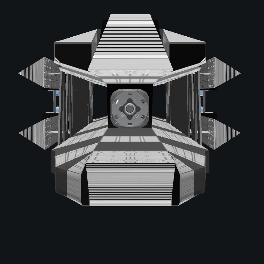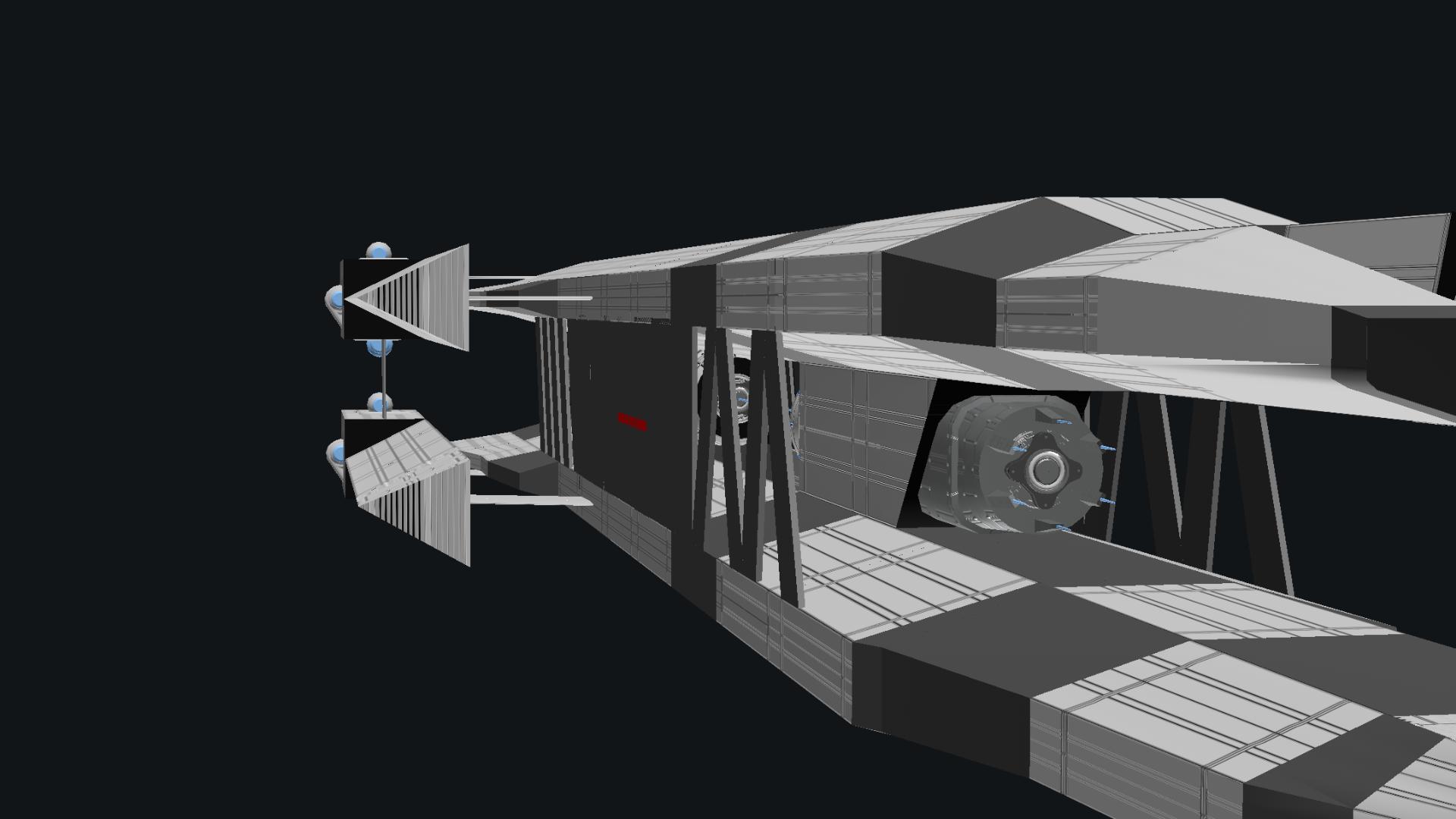 Mein gott....you just dropped one of the best space ships I've seen, look at it! It's pure talent, the design, the use of shapes, the use of symmetry, brother, this is insanely dope! Do you have a faction in mind to use this? Or are you just going to make ships for fun?