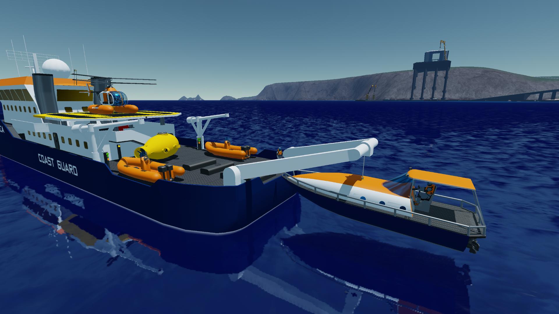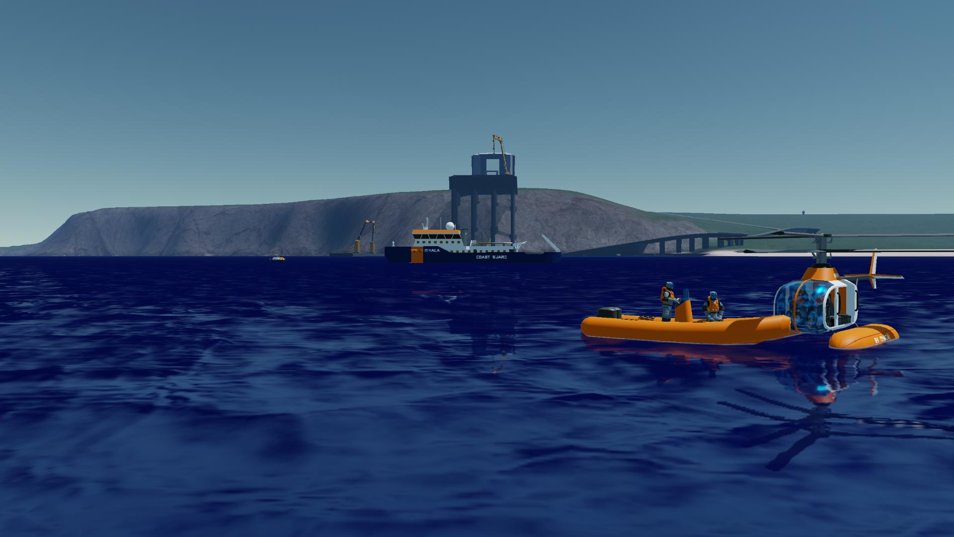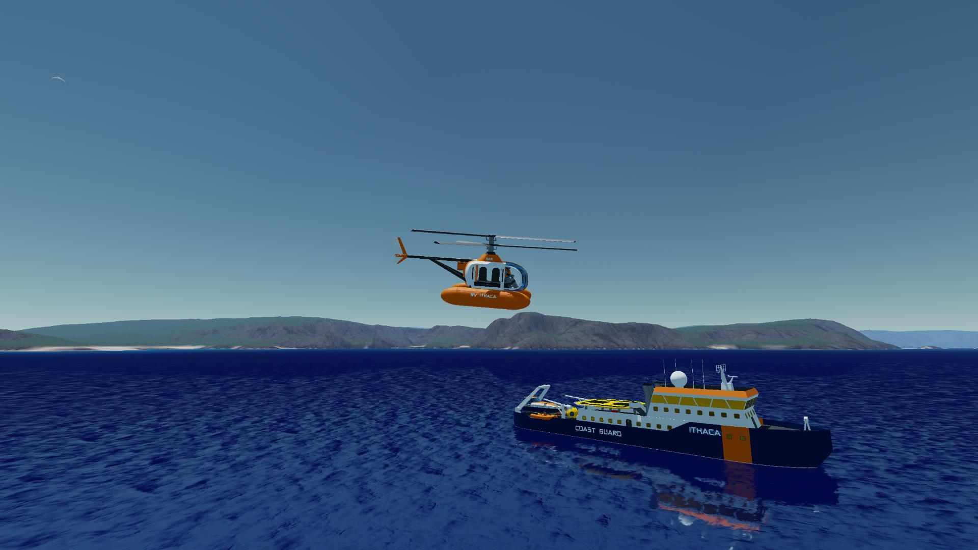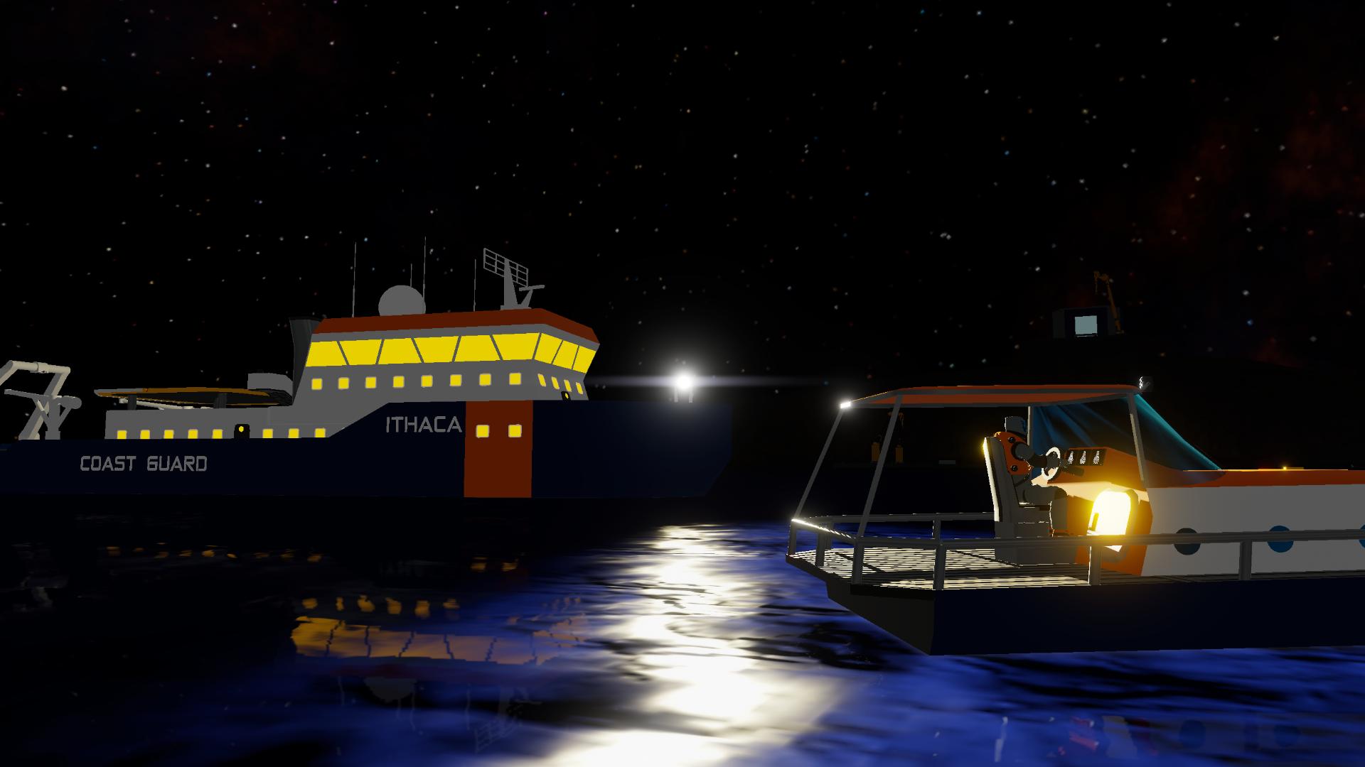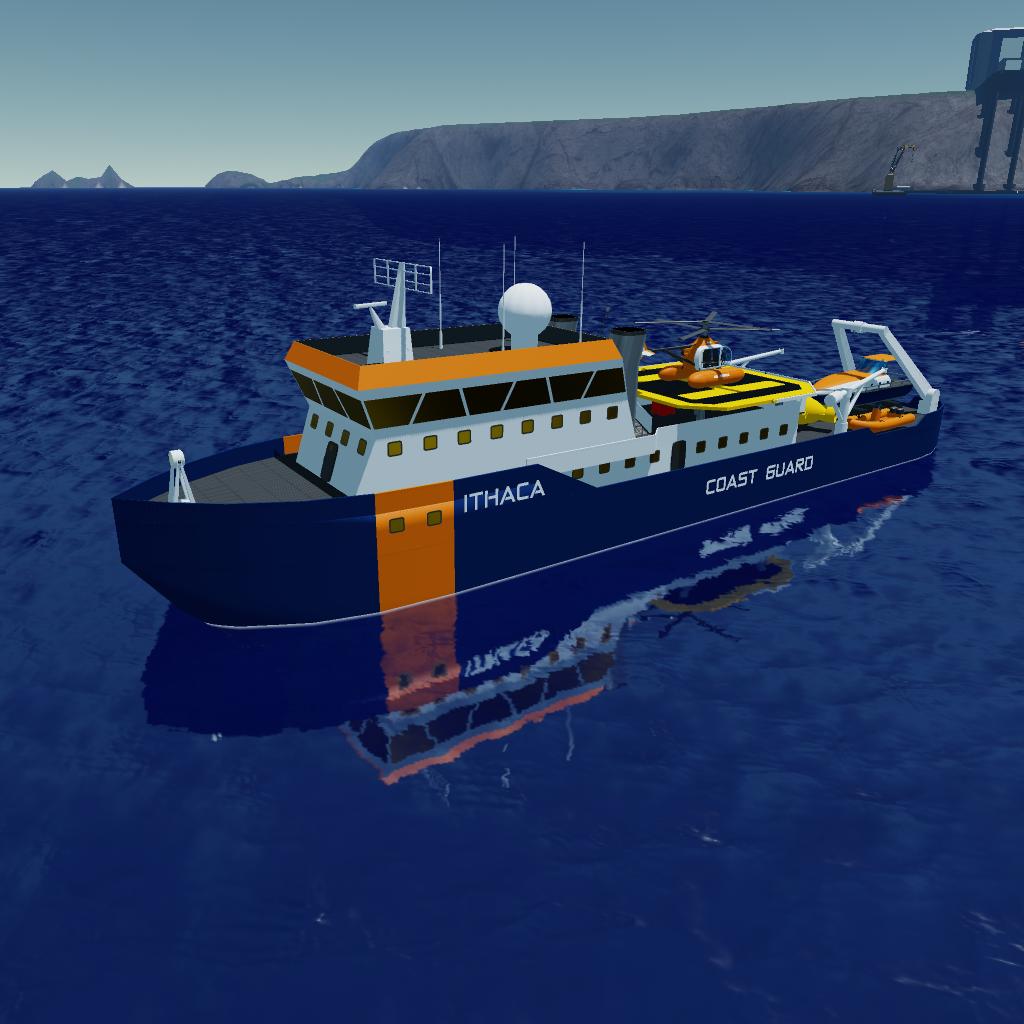 Big research/rescue vessel Ithaca, in coast guard colors.