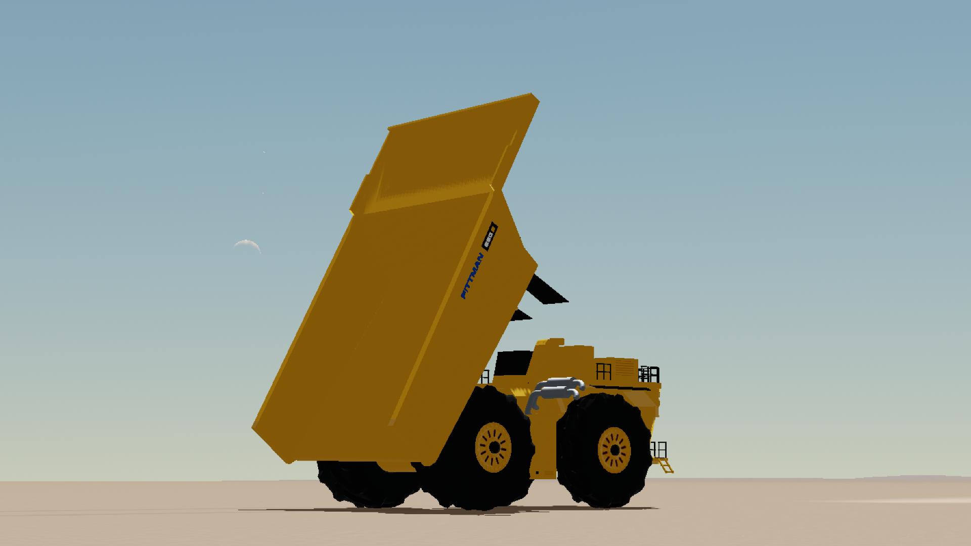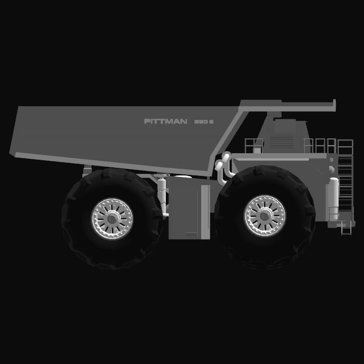 The largest vehicle offered by Pittman, a massive 60 ton mining truck with a huge bed and giant wheels. It would probably make a nice apartment...