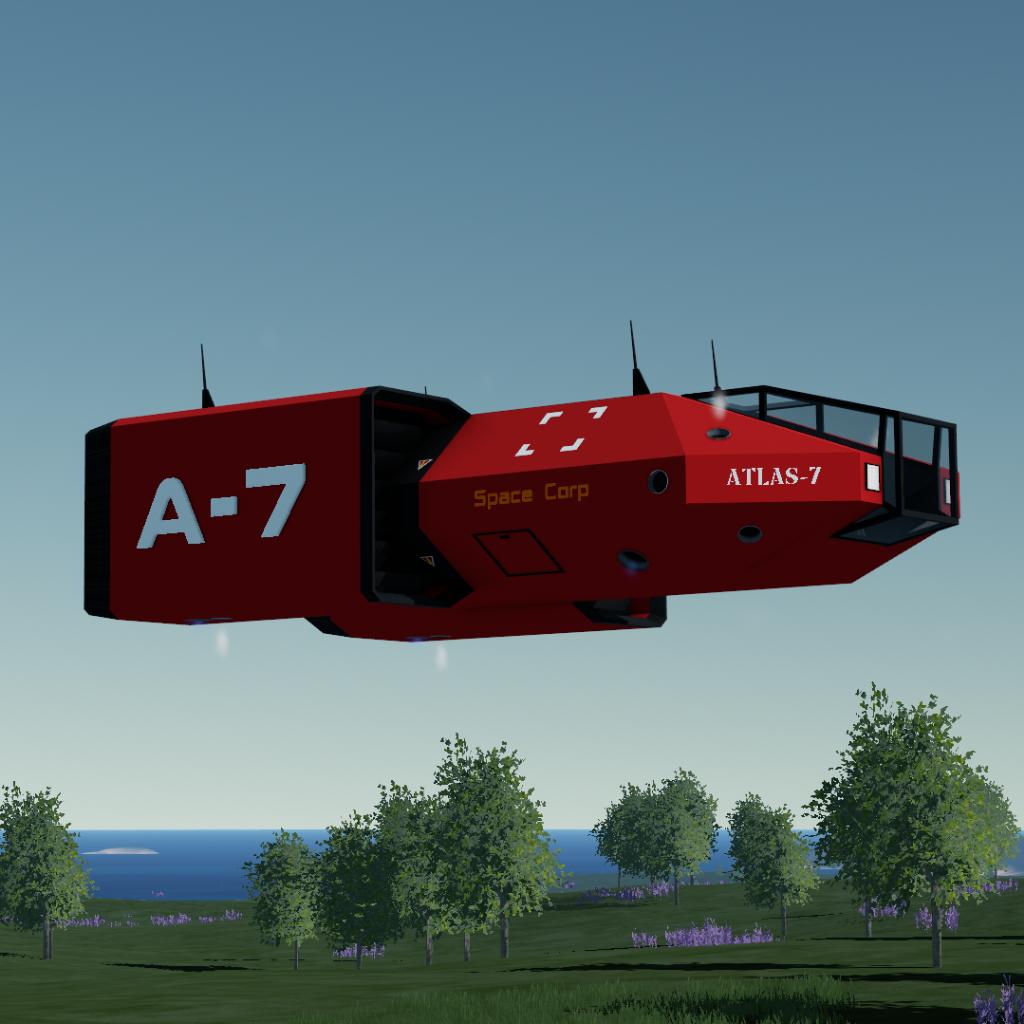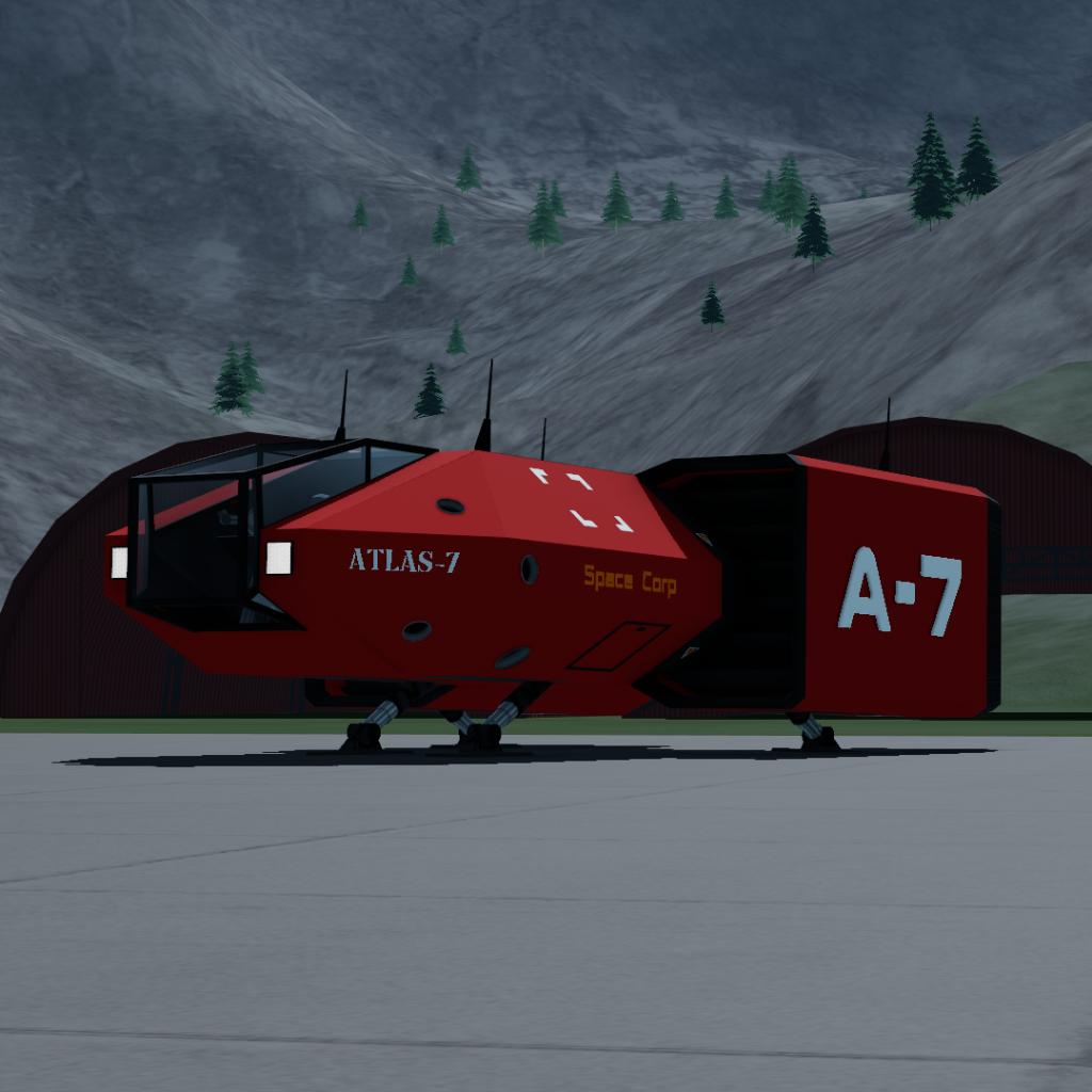 Built by Space Corp, the Atlas-7 emphasizes simplicity, durability, and low operating costs, allowing it to operate from remote bases, industrial facilities, or forward operating zones. Despite its limited internal volume, its modular layout allows for conversion into a small cargo craft by removing the seating, or into a personal transport craft with a simplified interior and extended range.