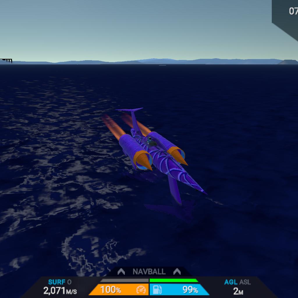 This thing is the fastest but tinkered water speed record EVER. Pretty much like the first SSTO Boat on JNO 😂. This has a top speed of uhh.... UNKNOWN. I really dont know what is the top speed of this vehicle because unlike jet engines, rocket engines don't have a SPEED LIMIT. The only tinkered part here is the fuel... Yes this has inf fuel. I may don't have a tinker panel but i took it from someone's craft with aa inf fuel sooooo thats why there is a autocredit in this post. The only issue here is the heat.... If you wanna take this off to space, you must need to tinker this to have heat resistance (if you have the sandbox bundle). so, ENJOY