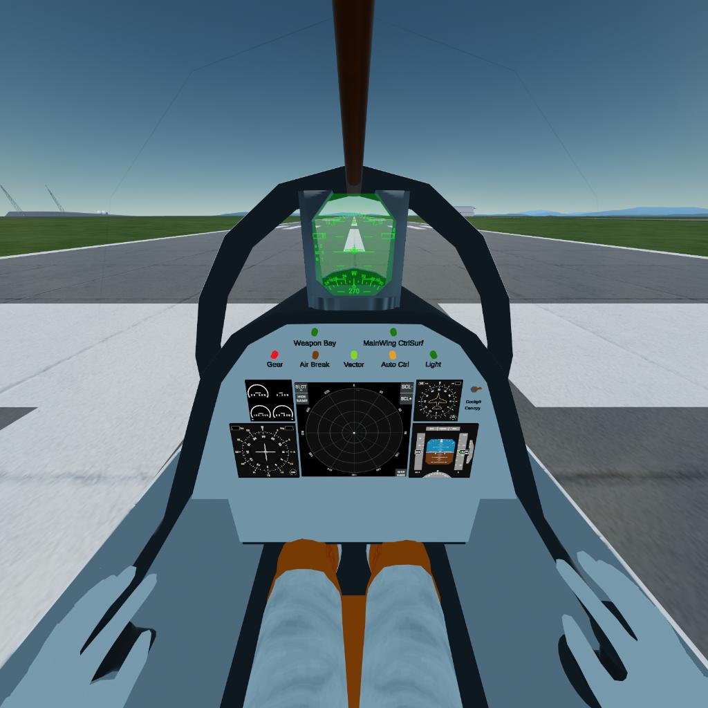 Furthermore, a highly detailed virtual cockpit has been modeled, complete with a joystick, HUD, indicator lights, and MFD screens, enabling an immersive first-person flight experience.