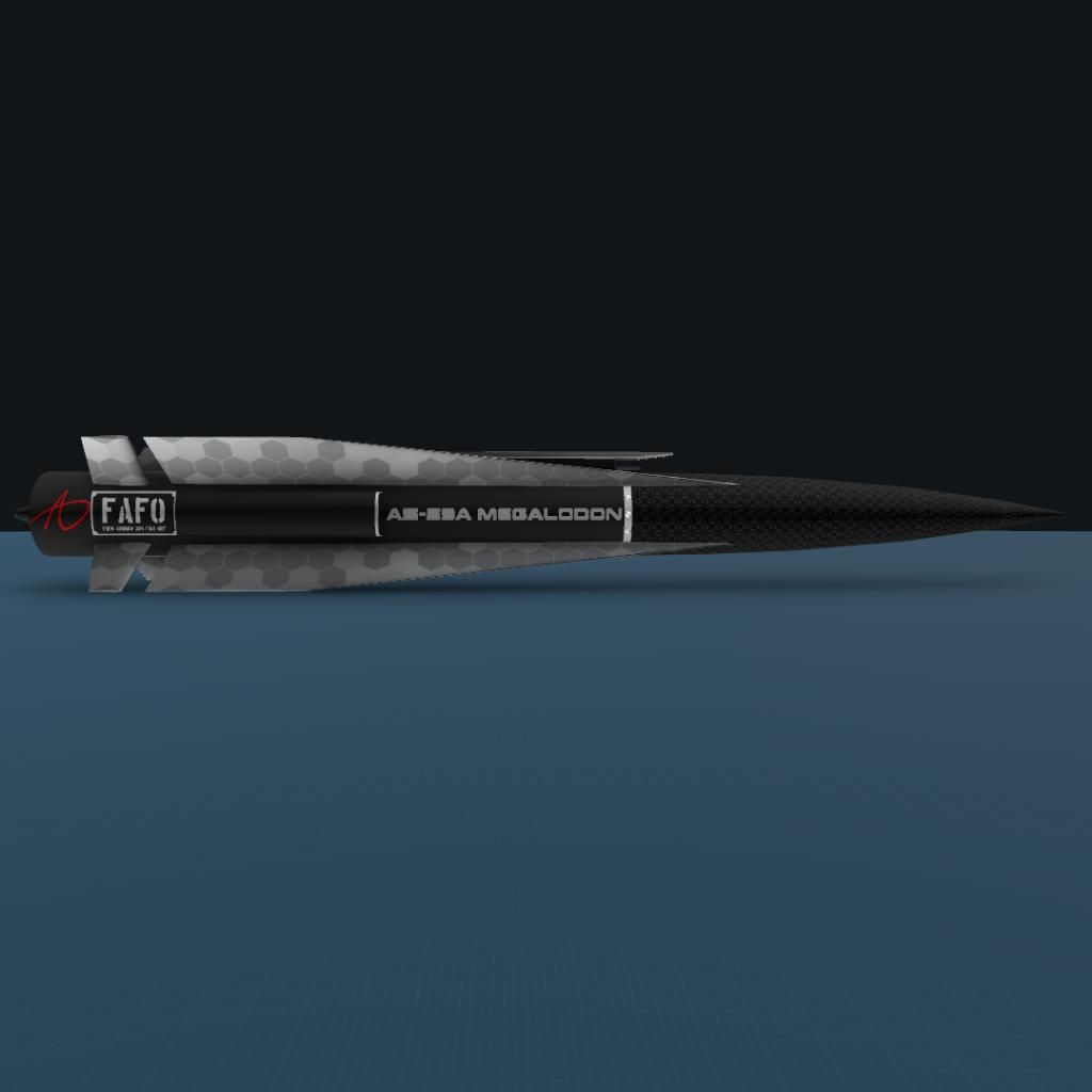 The AS-59A Megalodon is an air launched, heavy weight, ultra long range air to surface cruise missile. It carries more than 500kg of PETN, which is more than enough to devastate medium sized ships. It also has a max cruise of about Mach 4, showing that this missile is no slouch to intercept.