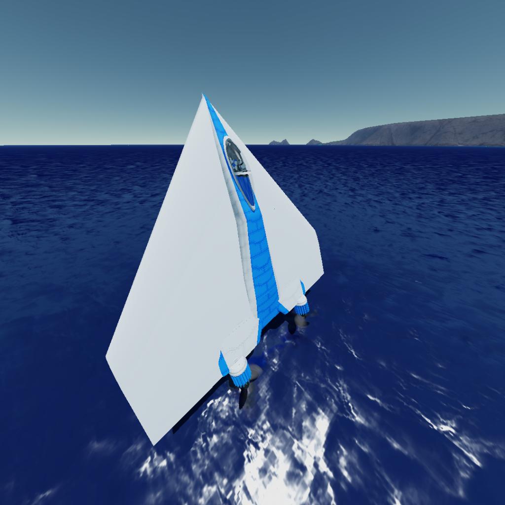 my first craft. launch it from DSC bay... duh... also don't forget to IMMEDIATELY turn on throttle or else the propellers will die an excruciating but quick death on the ocean floor