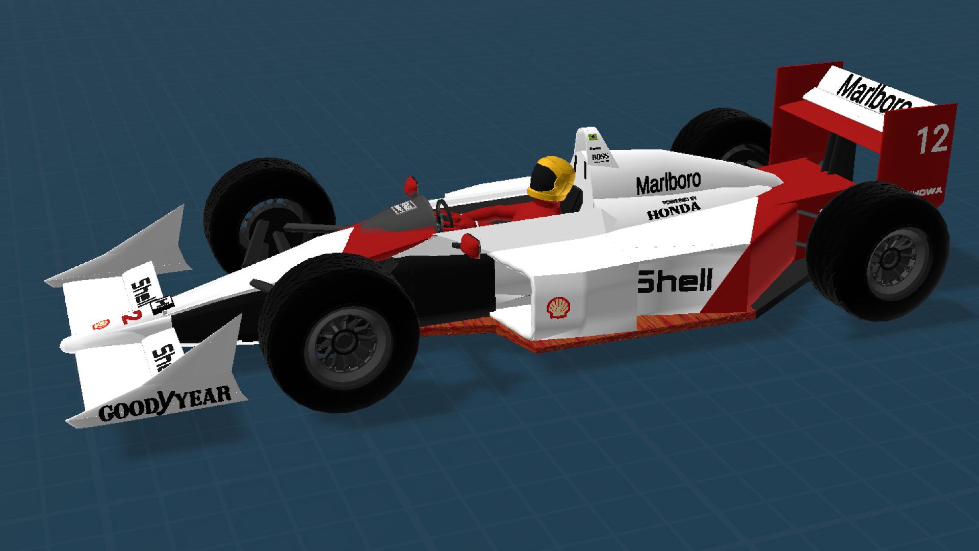 Inspired by the McLaren MP4/4, this project focuses on the philosophy of the original car, prioritizing a low profile, aerodynamic simplicity, and good straight-line efficiency. It is not an exact replica, but an interpretation designed to work well within the game, with mechanics tuned for linear acceleration, stability, and easy control. The cockpit is simple and functional, with no unnecessary gauges, and the overall package was developed to be light, predictable, and enjoyable to drive, with the 1988 MP4/4 as its main visual and conceptual reference.