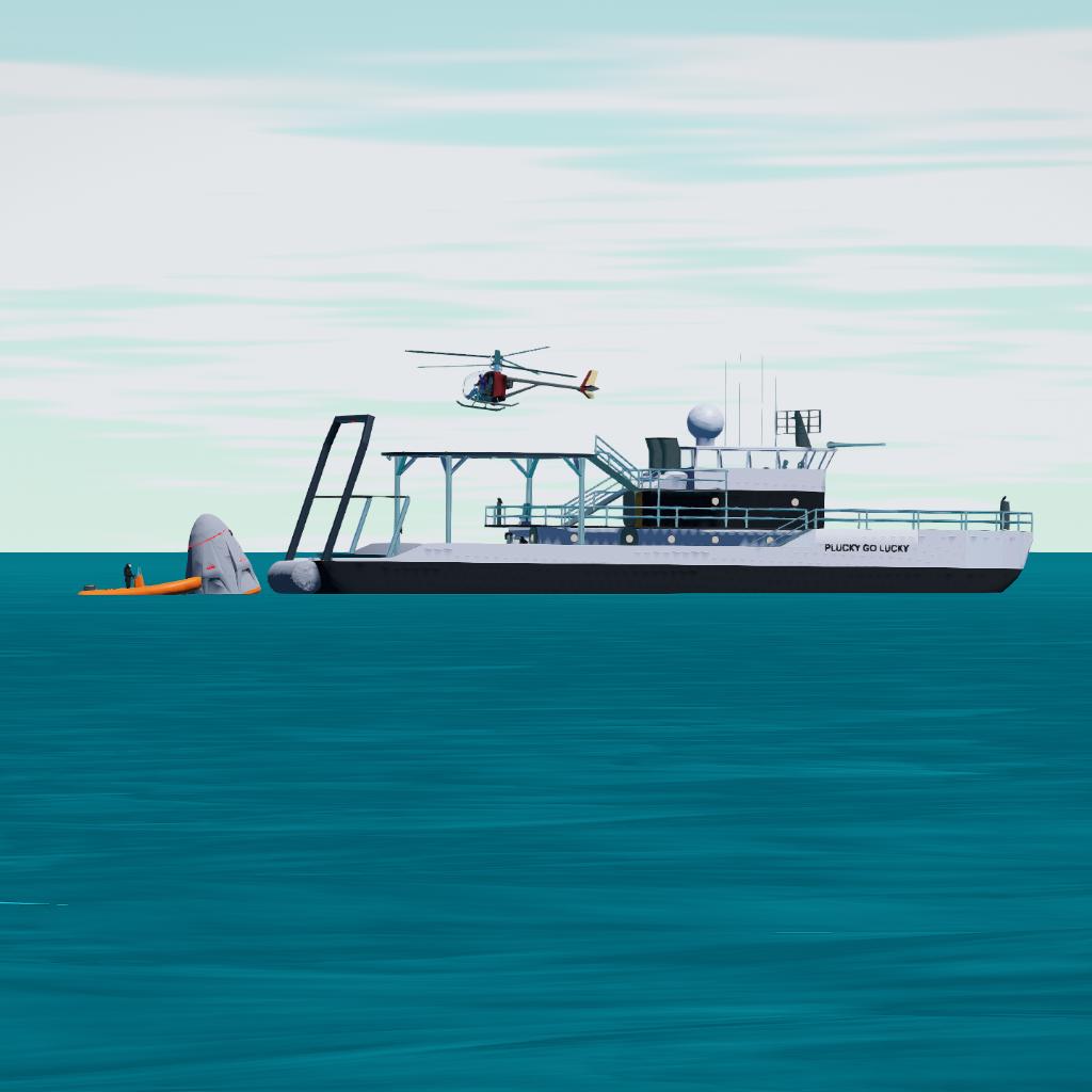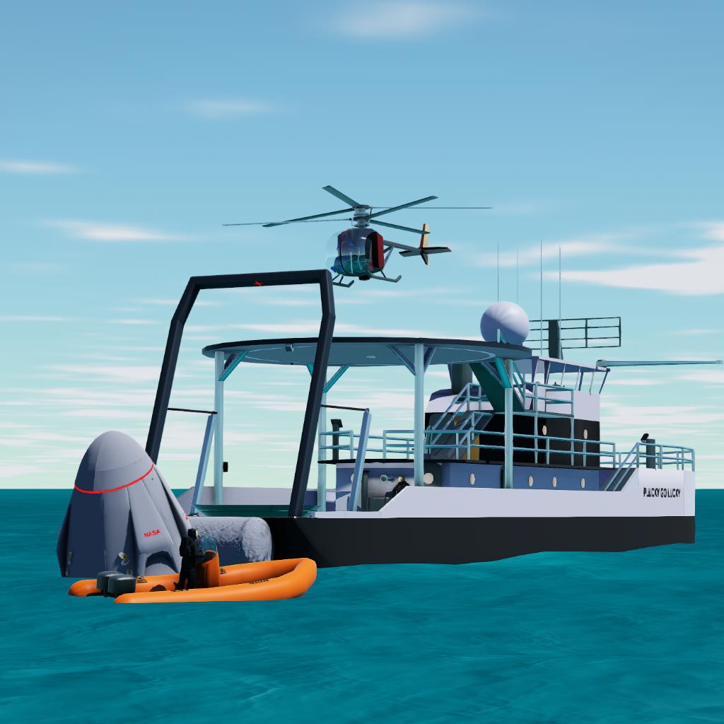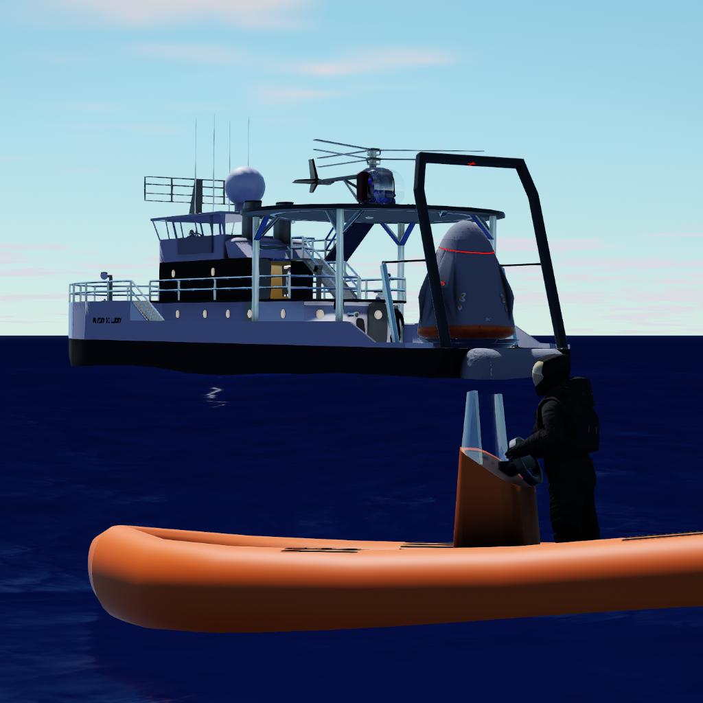 This recovery ship has been developed for Full Feature Falcon 9 v3.0 Crew Dragon (NET 1st quarter 2026). Works with other capsules also.