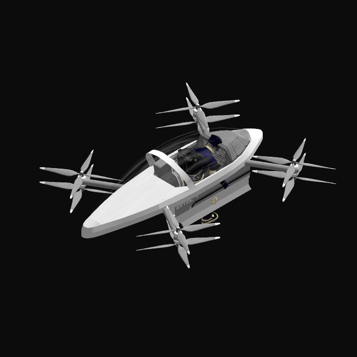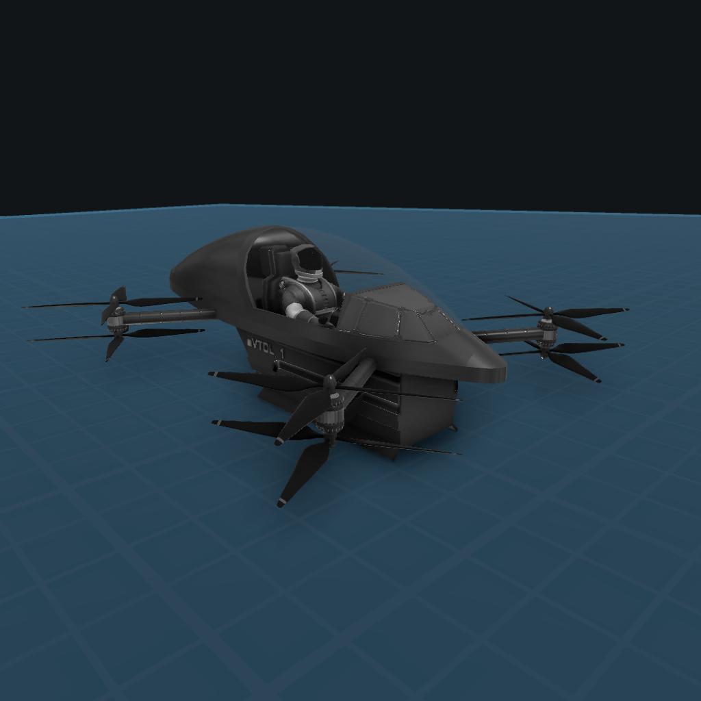 This is my latest eVTOL design: the eVTOL 1. It's a highly stable and maneuverable drone, perfect for both exploration and career mode. All controls are handled by Vizzy, which manages propeller RPMs to ensure exceptional stability without the need for a gyroscope.