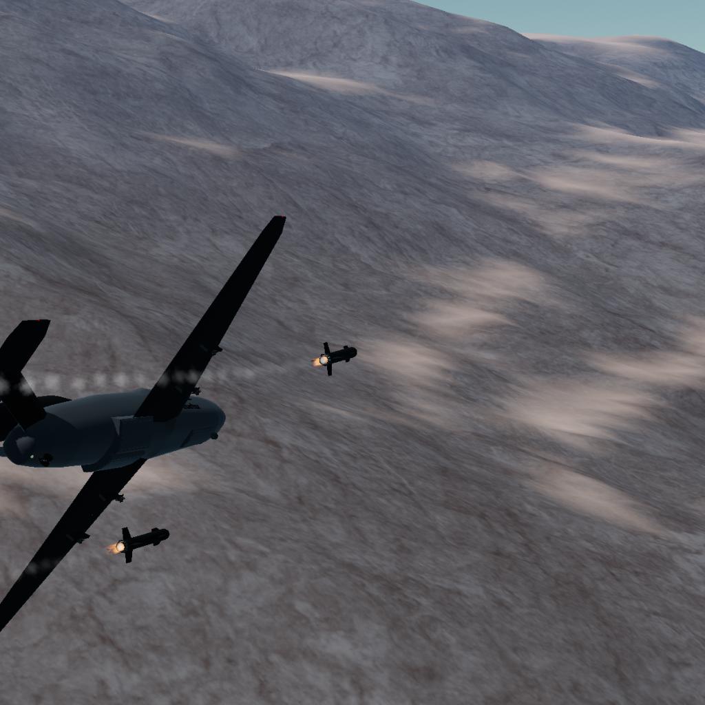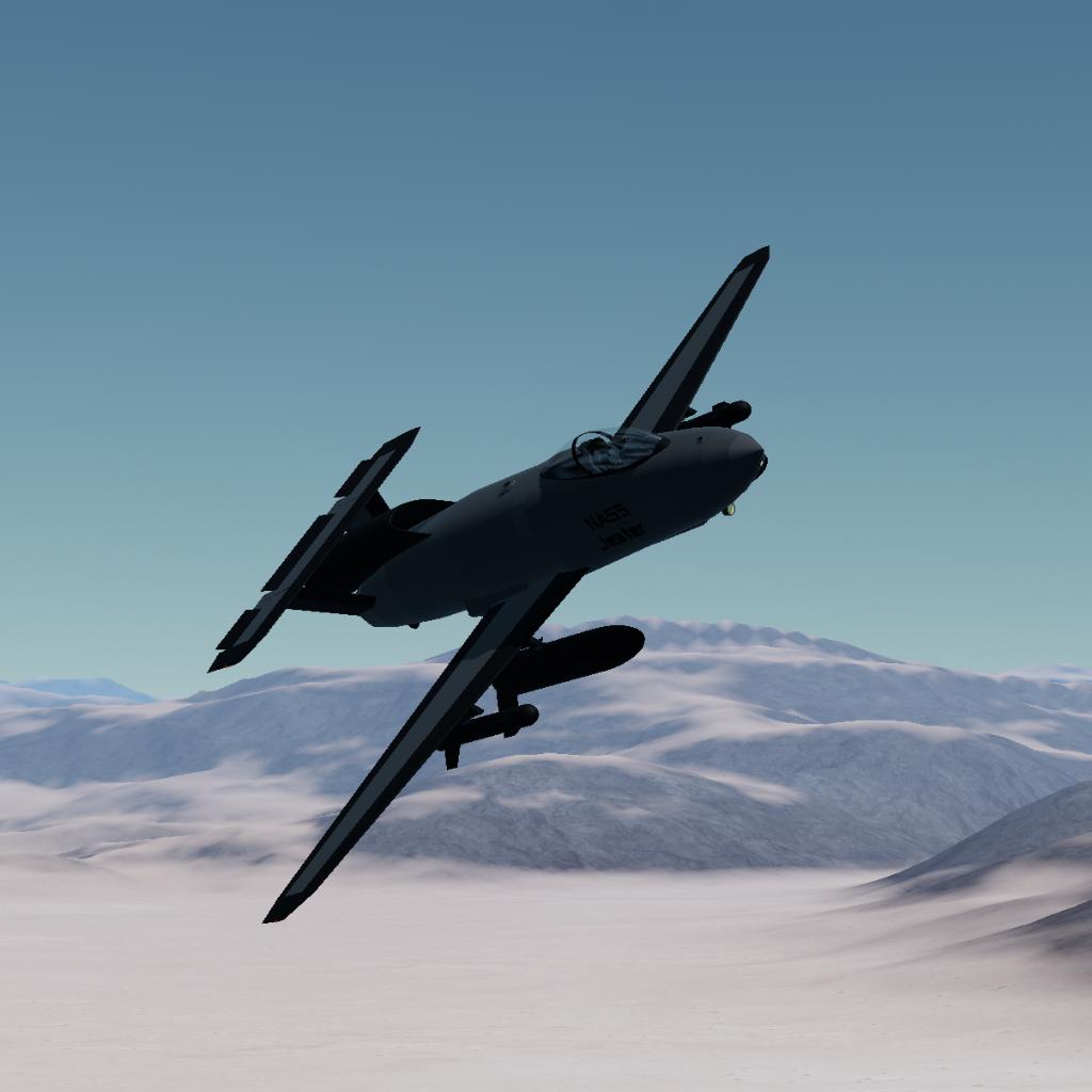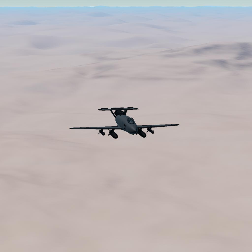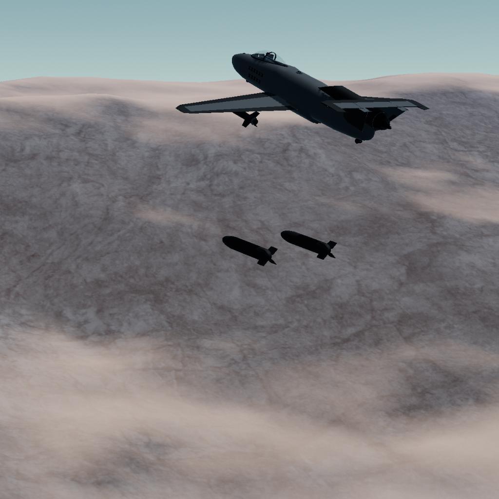The C-10 A Jester is a single-engine attack aircraft. It can support up to four large bombs, drop tanks, and missiles. The Jester is very maneuverable and has a top speed of just under 300 m/s (no payload). I don’t know what the stall speed is, but I know it’s low (below 75 m/s).