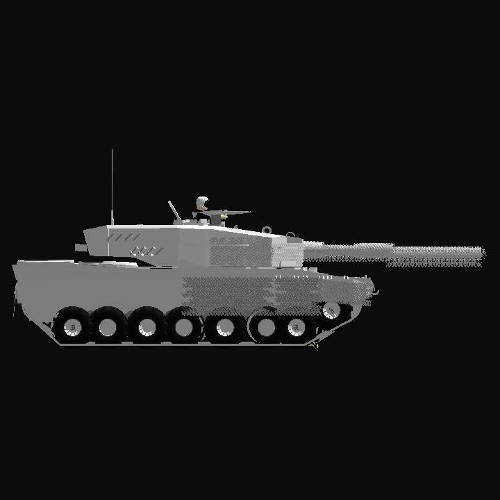 Leopard 2AV: The earliest variant immediately after the Keiler. It is a vertically flat, angled laterally turret. It is armed with a British L7 105 mm rifled cannon. Lightly armored, on par with the earlier Keiler.