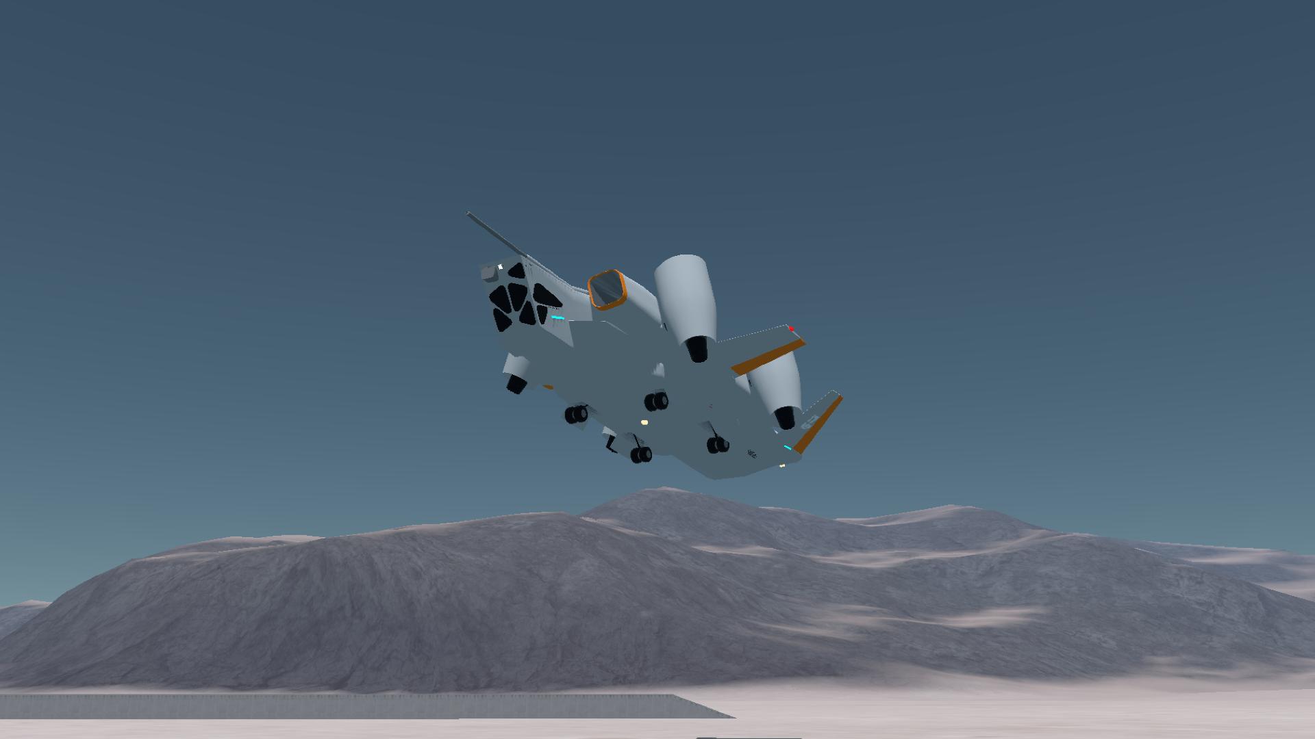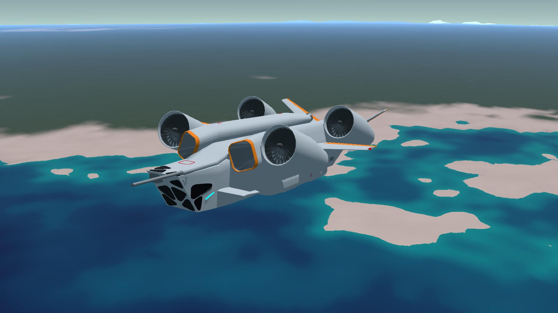 Named after the Spanish word "Workhorse" The CV-47 Rocinante is a heavy lift quad-jet VTOL aircraft with versatility in mind, and thus can do any missions you give to this aircraft (but you need to stick the landings!)