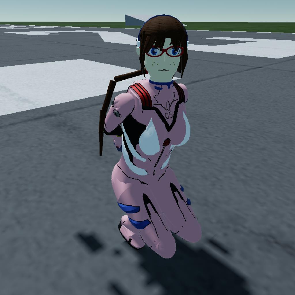 Ultra-detailed and functional robot based on Mari Illustrious Makinami with functional limbs, and also has a head-mounted camera allowing a first-person view.
