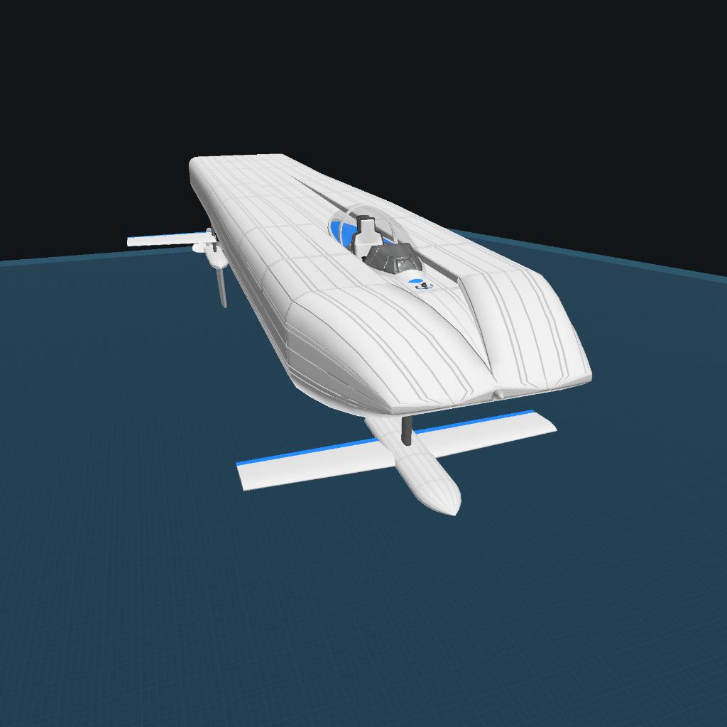 This is the earlier version of my 156 m/s boat, without the tweaked settings needed to level the boat when sitting still. It will still lift, but it submarines quite badly during initial acceleration. Keep the power in and it will eventually get up on plane. I’m posting this mainly to show how the design progressed.