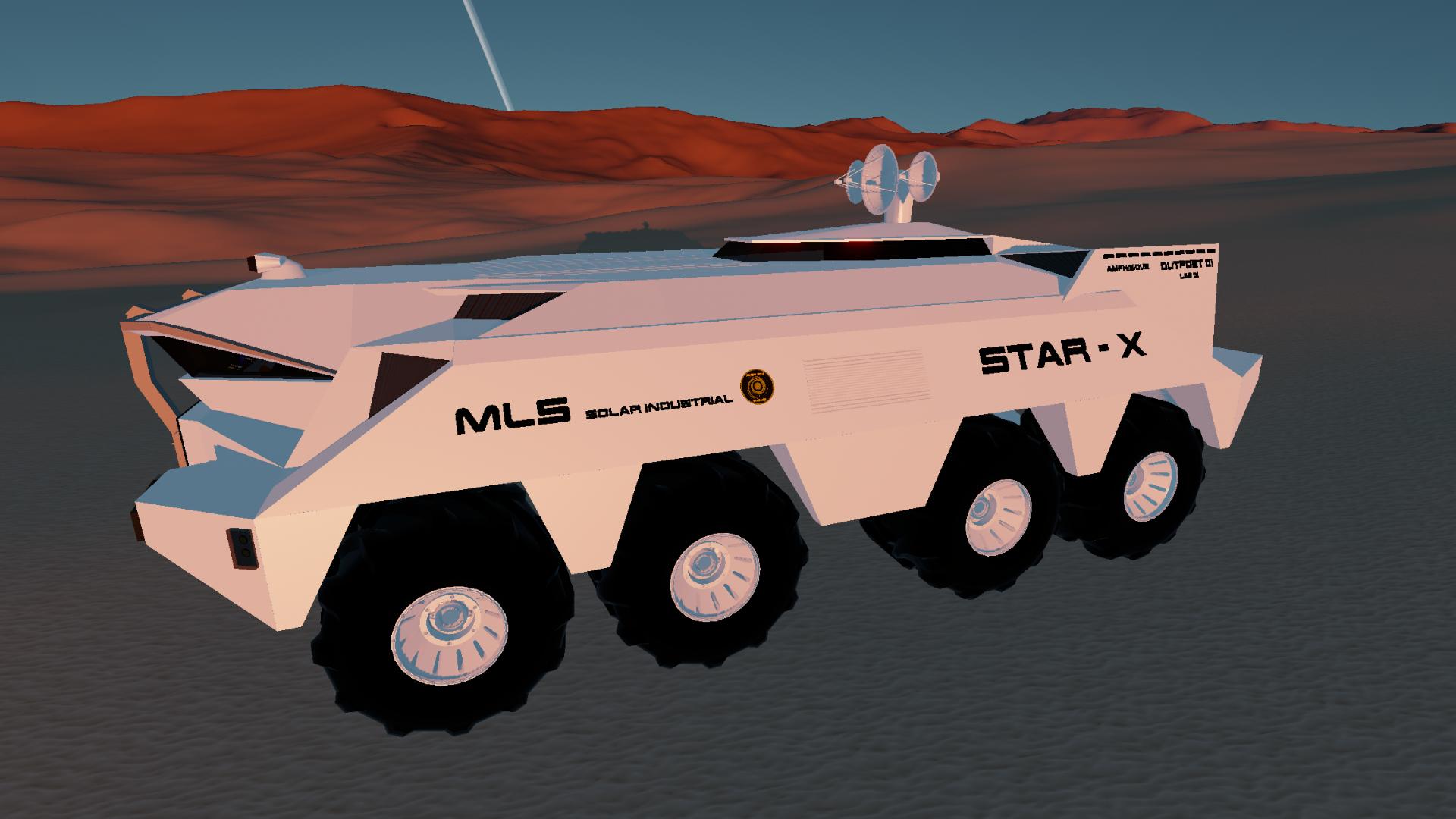 Crew of 4 fully autonomous. Amphibious and submersable. Programable maintain a depth. Drills samples. Can be told to travel to a target or travel on a specific heading. Has great off road handling. Automatic stability control if its in liquid or becomes airborne.