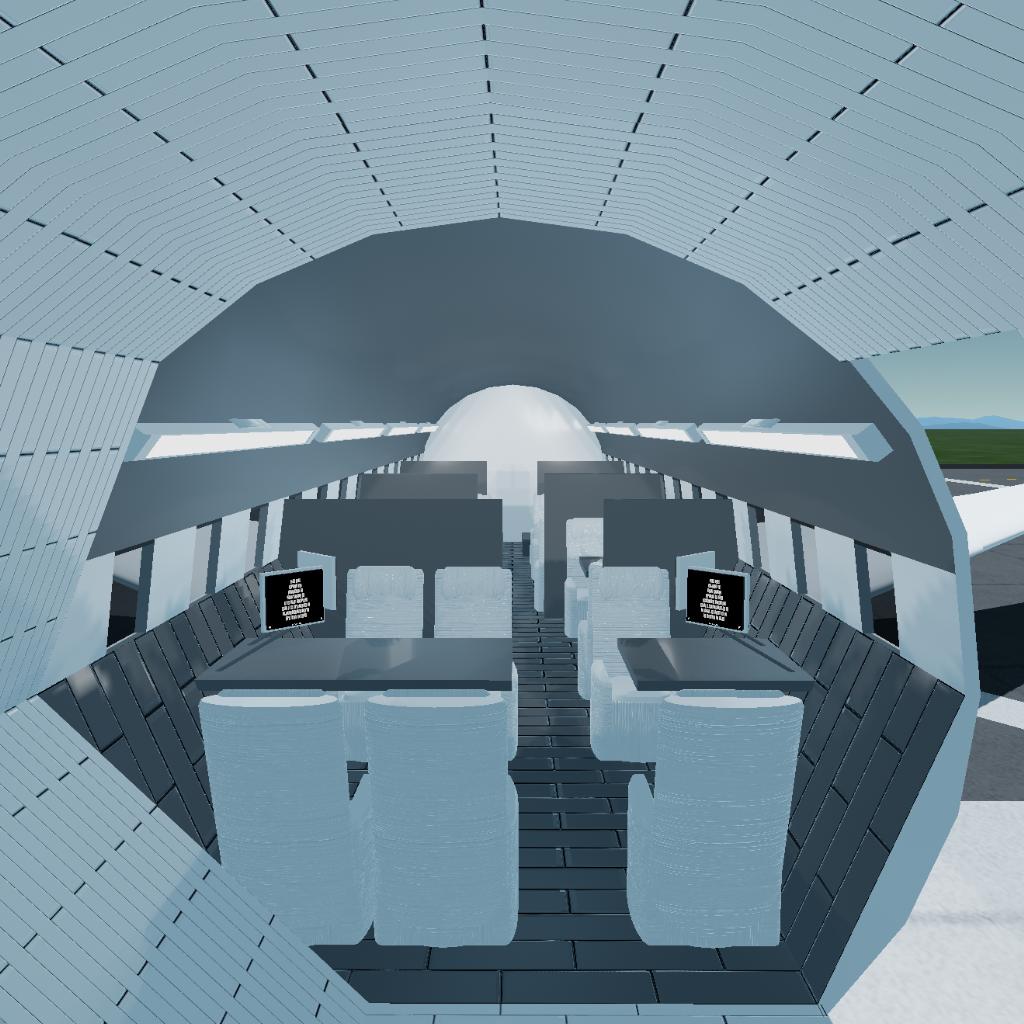 Each seat has their monitor screen, with the rear having extra legroom for the two seats. Additionally, each pair of seats has a foldable table, while the front of the cabin has a longer table on the right since there are 4 seats on the right side of the area.