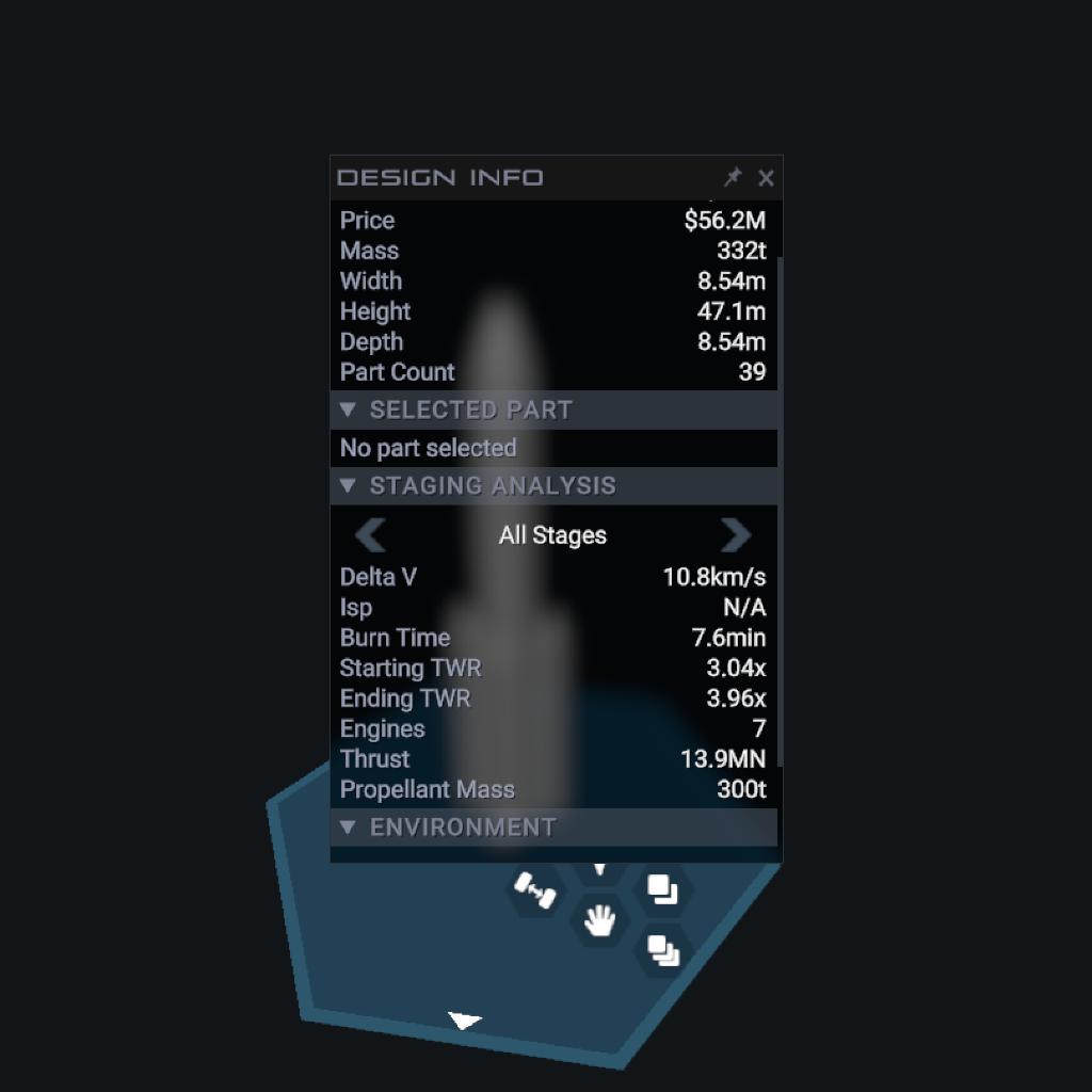 | Stage | Engines | Delta V | Thrust | Burn | Mass |