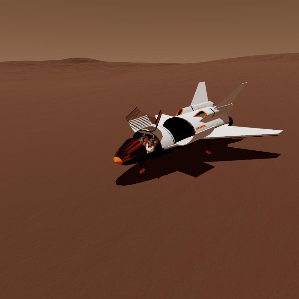 This is a versatile mult-purpose spacecraft with vtol thrusters for vertical take-off, a small cargo bay with floor clamps and a crew compartment with space for two astronauts.