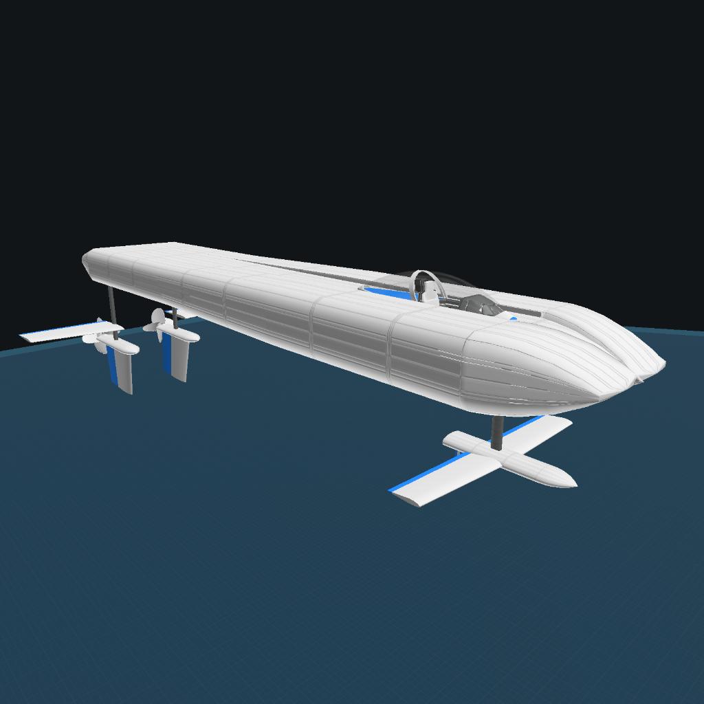 This version of the boat uses several tweaks to compensate for the several tons of weight in the nose needed to balance the massive nose-up push the engines cause. I will release a non-tweaked version, Hydrofoil 2, so you can see just how much weight there is.