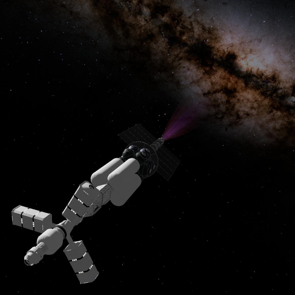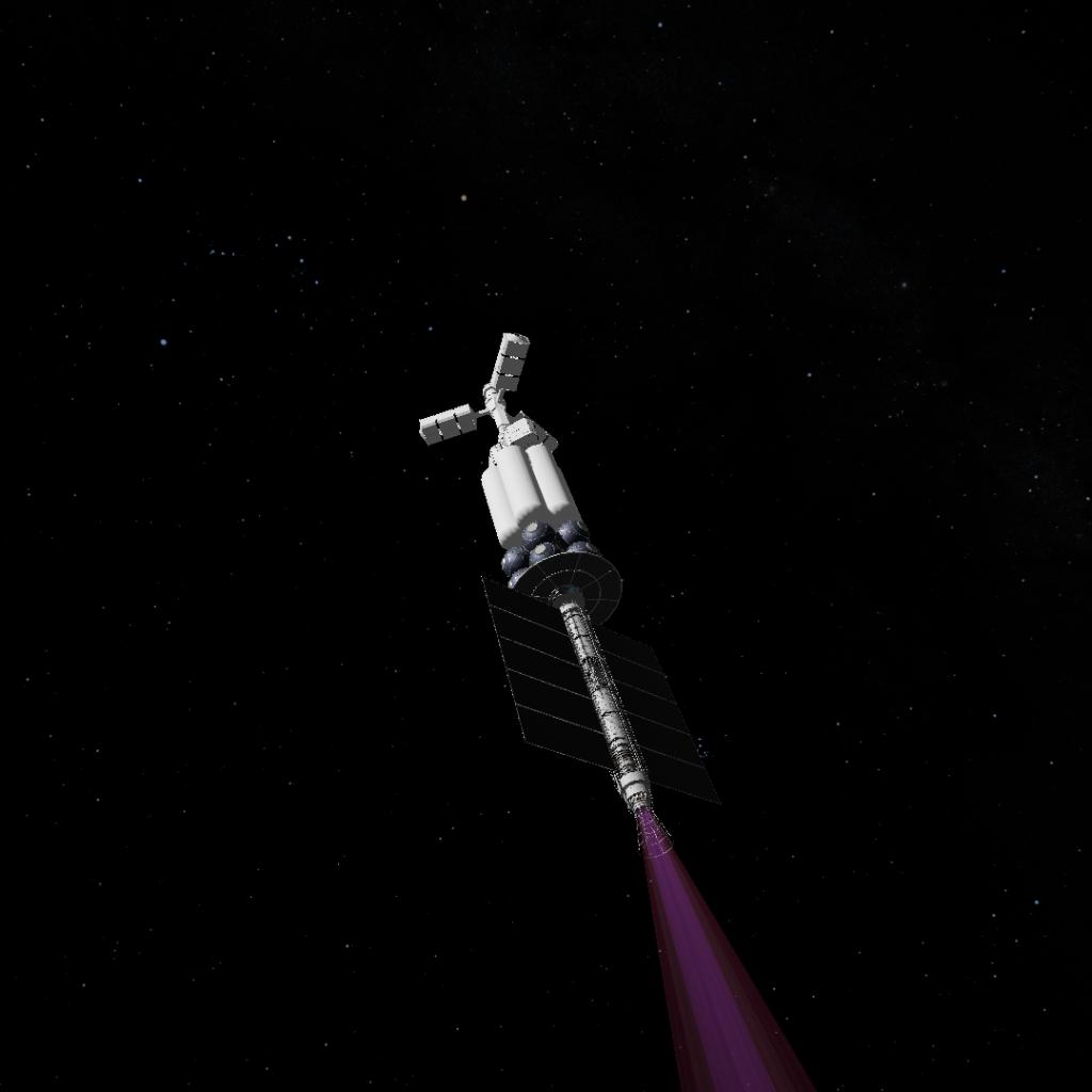 It is designed to exist for the construction of a ground base for large Jupiter-related satellites and the transportation of personnel, for which it has four hardpoints to carry four detachable disposable cargo boxes with a total weight of 100 tons (including cargo), The cargo box contains fuel and engine,each with a payload of 40 tons. However, it is important to note that this archive does not include a cargo box and will be updated if necessary. And this cargo box docking is too difficult (because the art design can only be very small in the interface design, it is recommended that players who think this behavior is too complicated make their own immovable cargo box. Due to the small thrust-to-weight ratio of the engine, the process of lifting the track is very long. A gravity simulation cabin is available to ensure the health of personnel during long-term deep space voyages