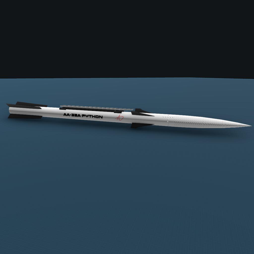 The Python A variant (AA-32A) is among the smallest of the radar guided missiles, being of comparable weight to many IR missiles. With a weight of only 108kg, however, this missile features extreme potential. It has a minimum range of 50km, and at high altitude, this can be stretched to around 150km. This is due to its aggressive loft and maneuvering algorithm, that allows it to come in from high arcs and strike the enemy below. This saves on precious energy and allows the missile to punch greatly above its weight class. It has proven reliable in tests, where it maintains a several to nil kill to miss ratio. At low altitudes, it is perfect for WVR combat, and performs sufficiently at BVR at high altitudes.