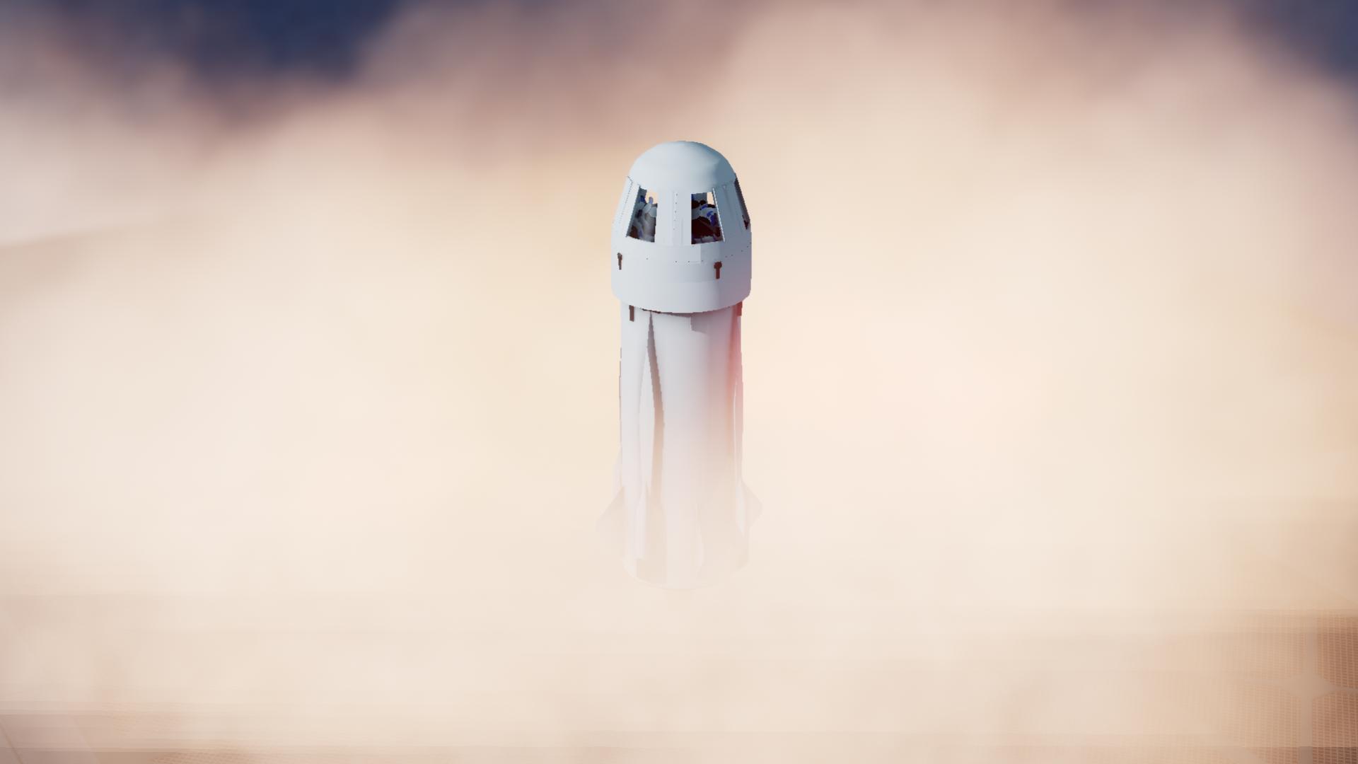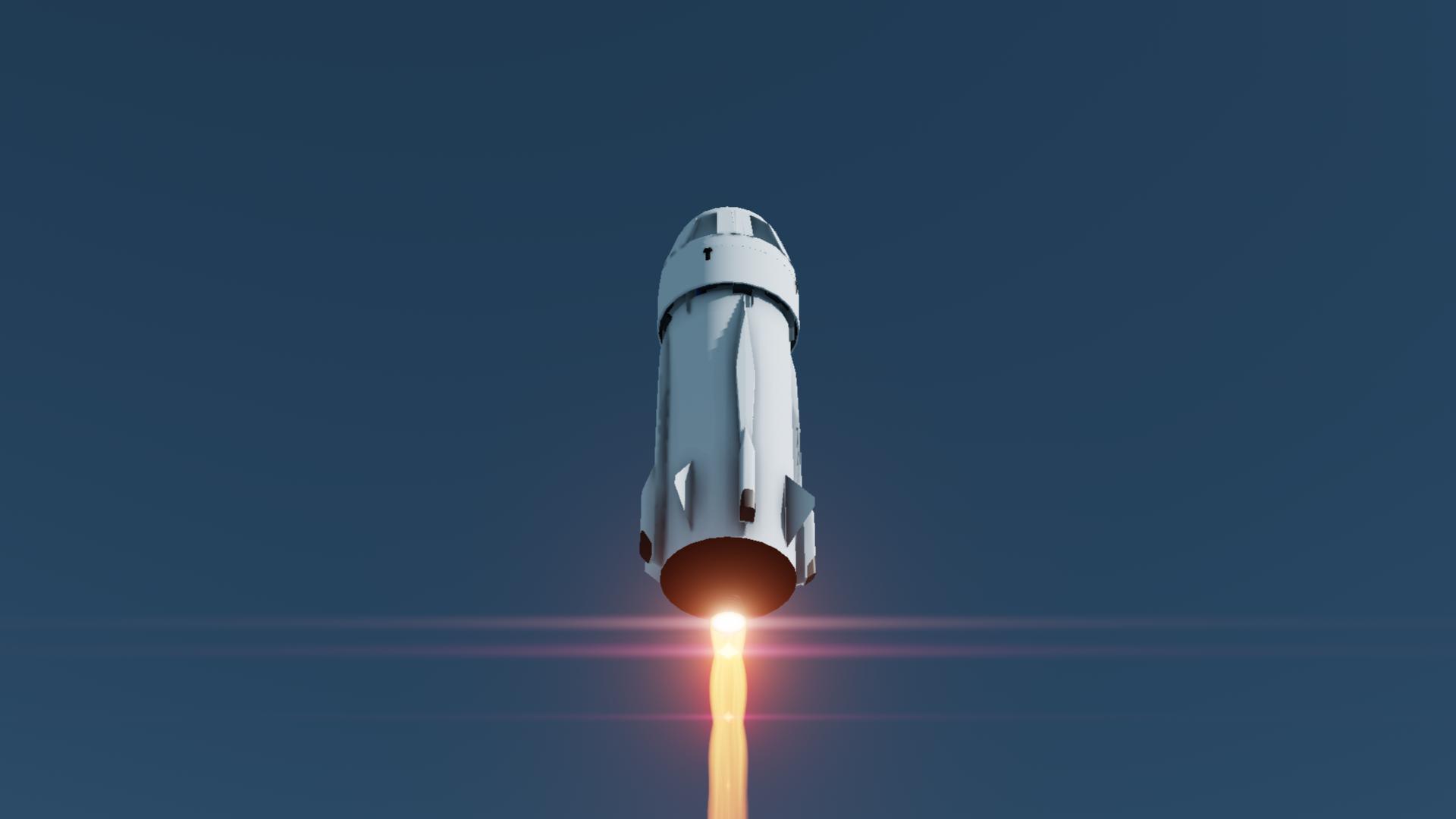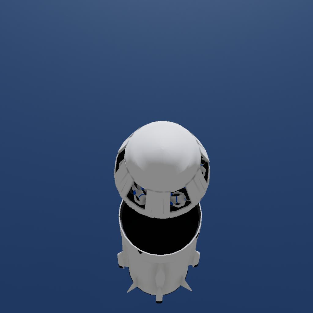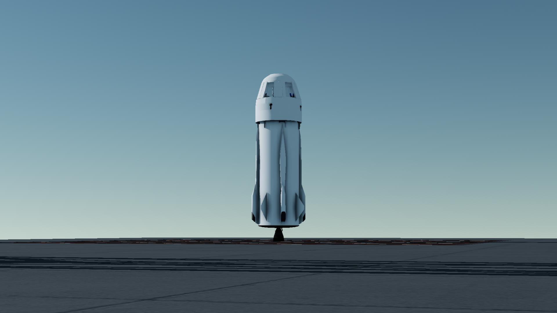 este es el nuevo shepard este cohete viene con sistema de escape y puede llevar a personas (en total 6) también su primera etapa es reutilizable y la cápsula igual (la primera etapa la tienes que aterrizar tu) (use el slider 1 para estirar las aspas)