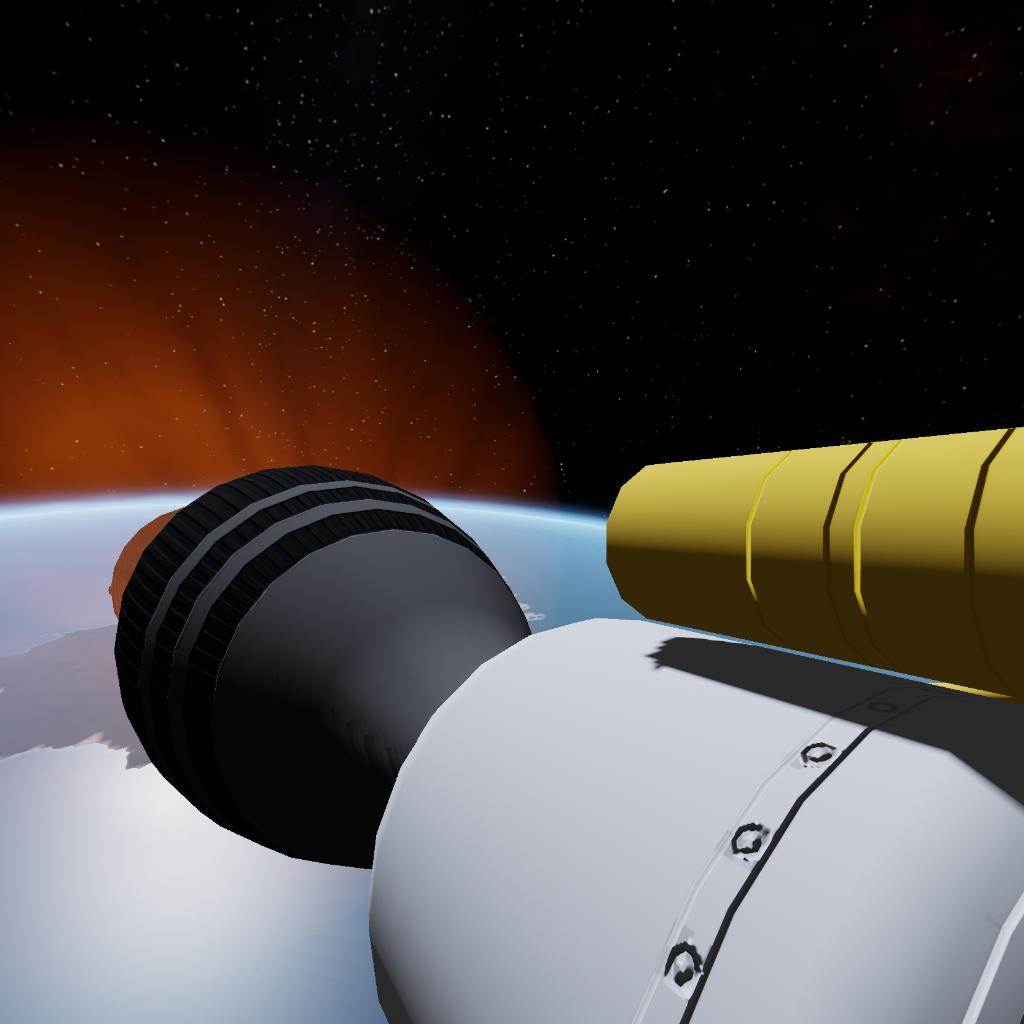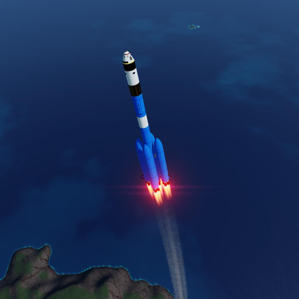 Crew variant of my Centurian rocket, it has 4 liquid boosters insteand of 8 solid boosters for lower G’s, and second stage was replaced by a hydrogen stage, so techniqally a different rocket just with Centurian name slaped on it.