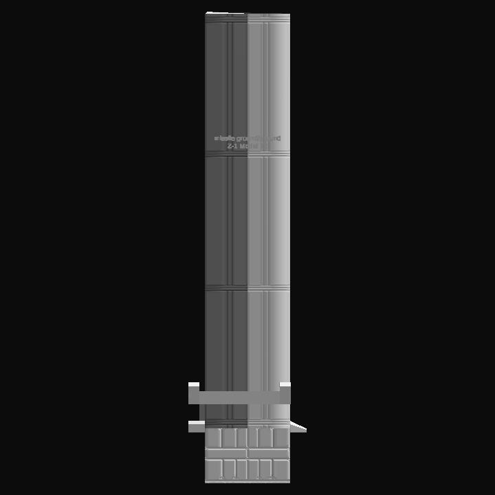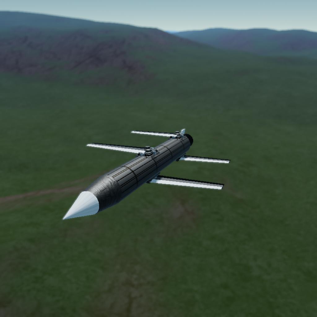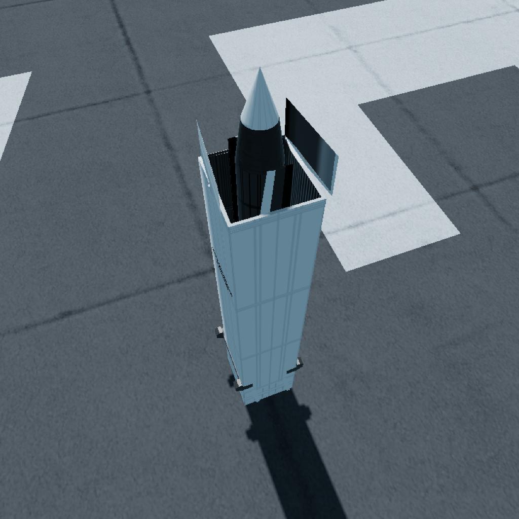 surface-to-surface missile model T2 equipped with deployable wings as well as the launch tube that goes with it,
