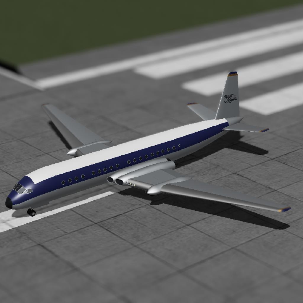 An early jet-powered commercial jet servicing Trans-Atlantia Airlines. It's unique design set it apart from other planes, however it was vastly unreliable at the time.