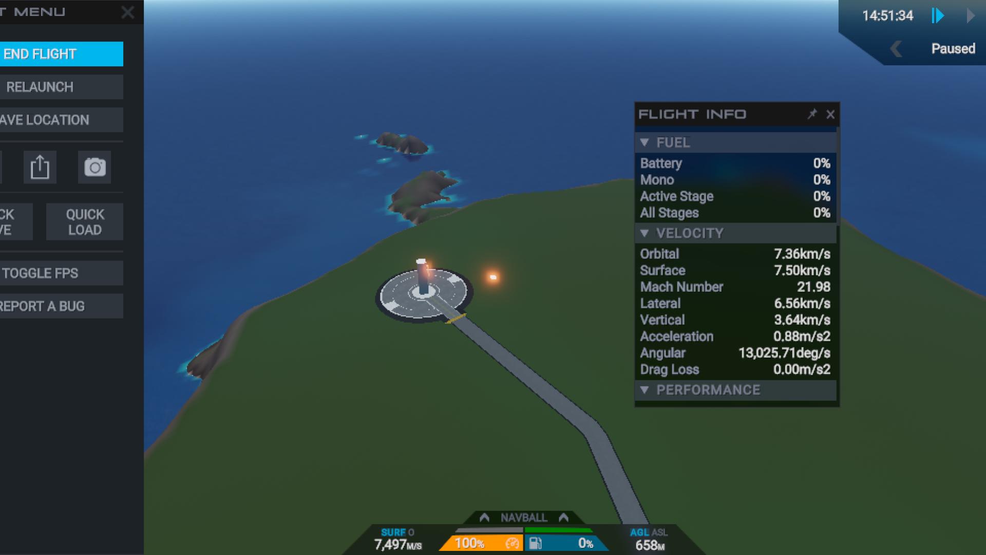 Can send the command pod at 7,125m/s. Which is enough to Send the craft to fricking escape velocity... FROM THE GALAXY!(Trust look at slide 1) Also, it's so fast when you pause and Play it's already in space 💔🥀✌️