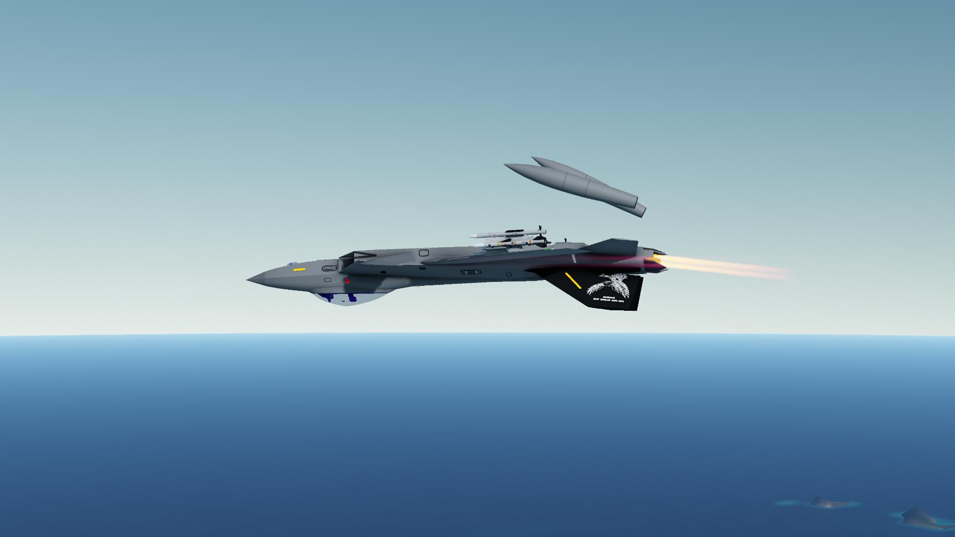 The missiles are custom made replicas of the AIM-120 AMRAAM. The load out consists of 6xAIM-120 4 on the pylons and 2 in the missile bays The jet also carries 2 R-77 missiles mounted on the pylons