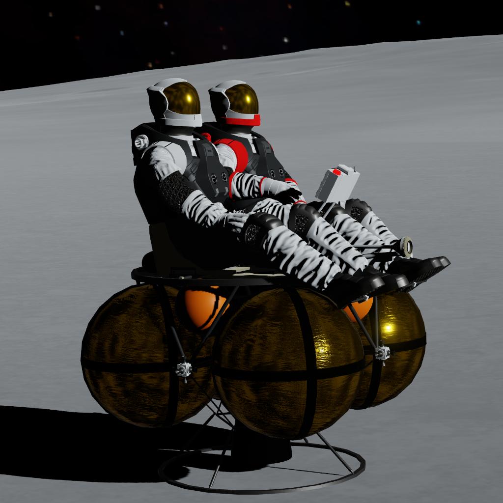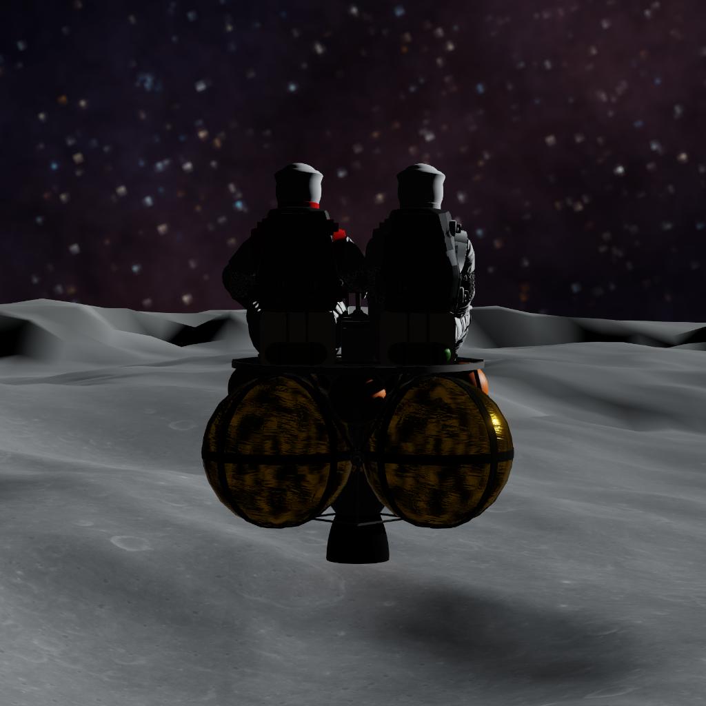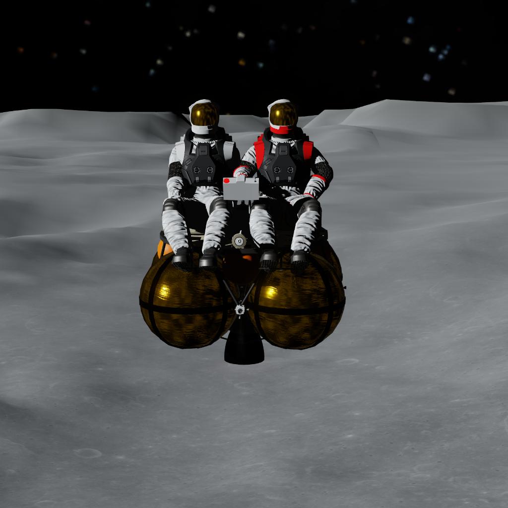 I built this in-game purely for fun to see if this hardcore concept actually works. It completely ditches fairings and complex structures. All that's left are two seats, some exposed spherical fuel tanks, and a basic engine. It looks incredibly barebones, but with careful manual flying, it genuinely has enough fuel to get from the lunar surface into a stable orbit.