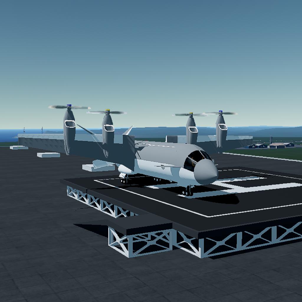 Special Operations Tilt - Wing Aircraft. The JV 27 is a New large Spec - Ops Cargo VTOL, being the most advanced Kashmian Aircraft, and overall greatest ever built by me. Designed to Carry Oversized loads while being able to land on ridiculously small areas, given the VTOL operator's skill.It combines the benefits of the JV 10's Tilt wing config, cargo capacity, speed with the JV 22's PAJE engines, Low- speed power, better design with a little of the JLM 3400's cargo capacity, while now having a full interior. It has new PAJECopter II engines which run on electric power and Jet fuel, cutting noise and emissions by half, while handling the stress of VTOL better than the JV 10. It's also fun to fly if you know how to fly it properly. It requires a Pilot and a VTOL operator, and has capacity for 4 crew members or engineers.