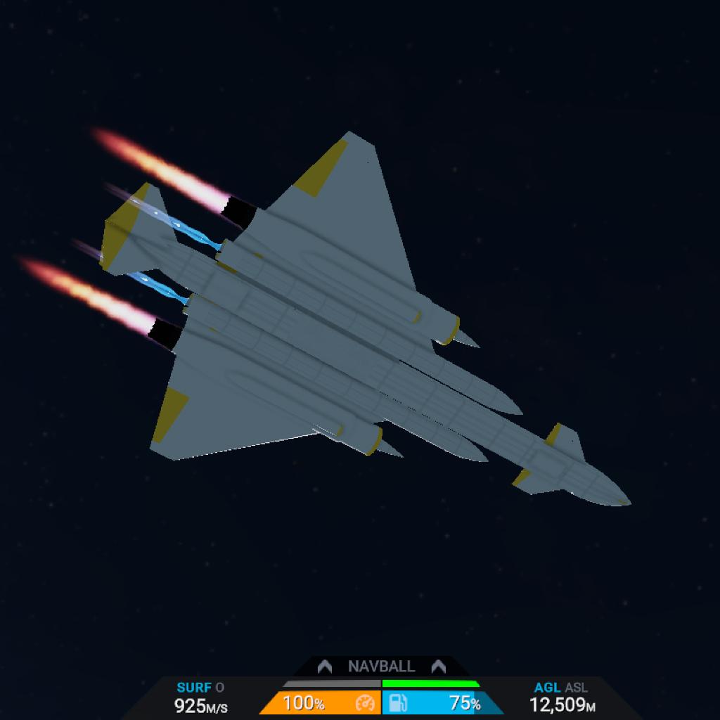 this is the first of many SSTOs i will be posting. meet oblivity, ive had her kept on my phones SSD (fyi phones use SSDS i think) for...maybe 2 years, shes a vtol. (SSTOS imo are ok to use inf fuel w/them) throwin ya into the deep end with the controlz. figure them out yourself. also the star shaped tail is MY unique thing, if i find ANY copys posted of it WITHOUT my permission i WILL take action.
