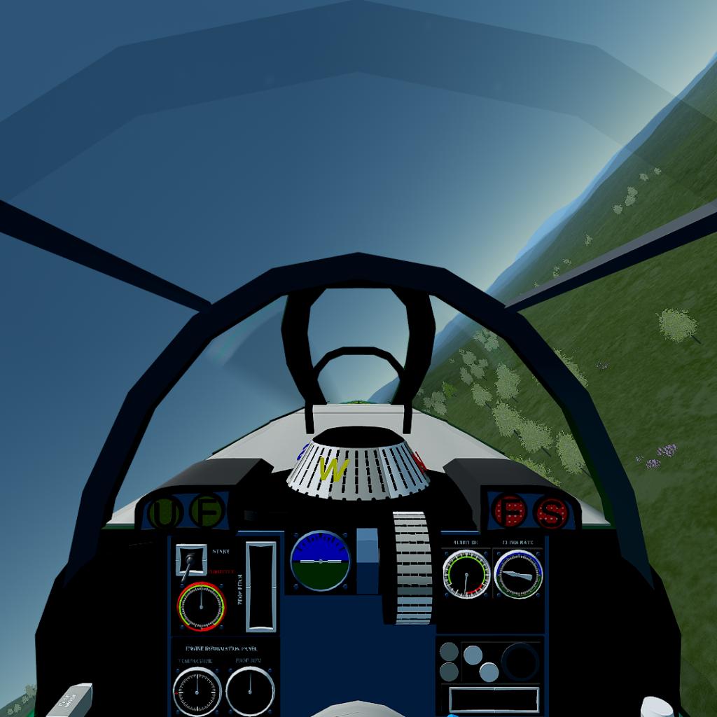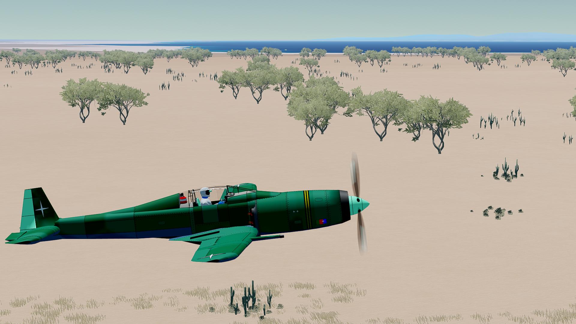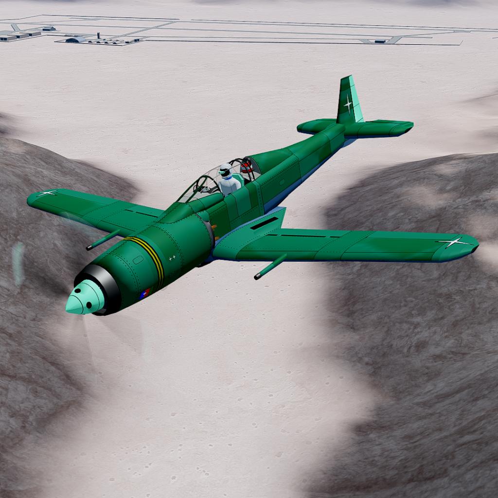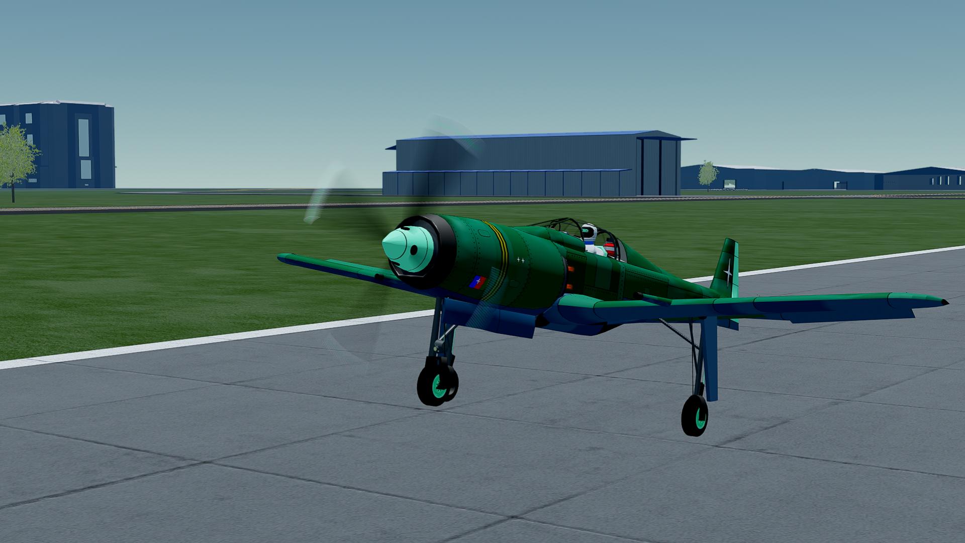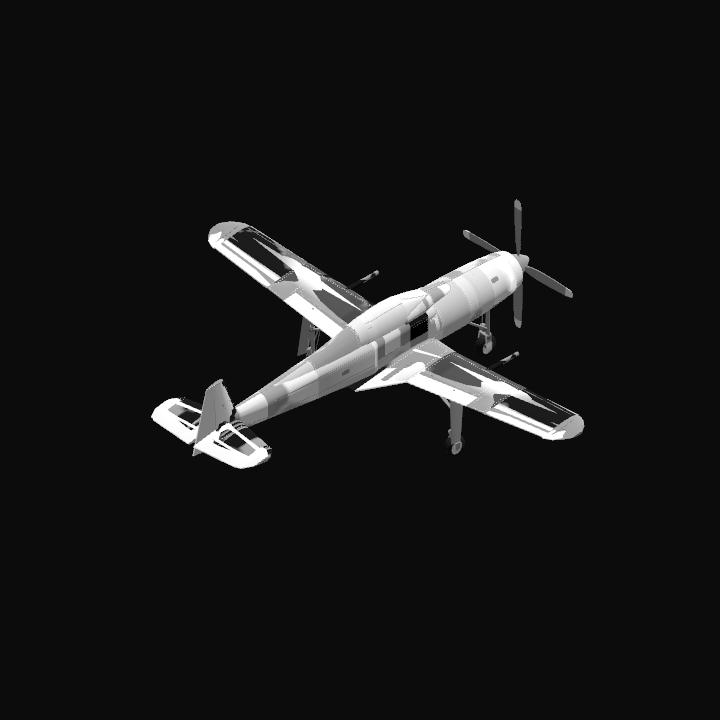 A 1940s expirmental fighter that is somewhat inspired by the fw 190, and has a semi-functional cockpit. It also uses a tricycle gear configuration, (although now I see that using a taildragger would have worked better) and has a variable pitch prop.