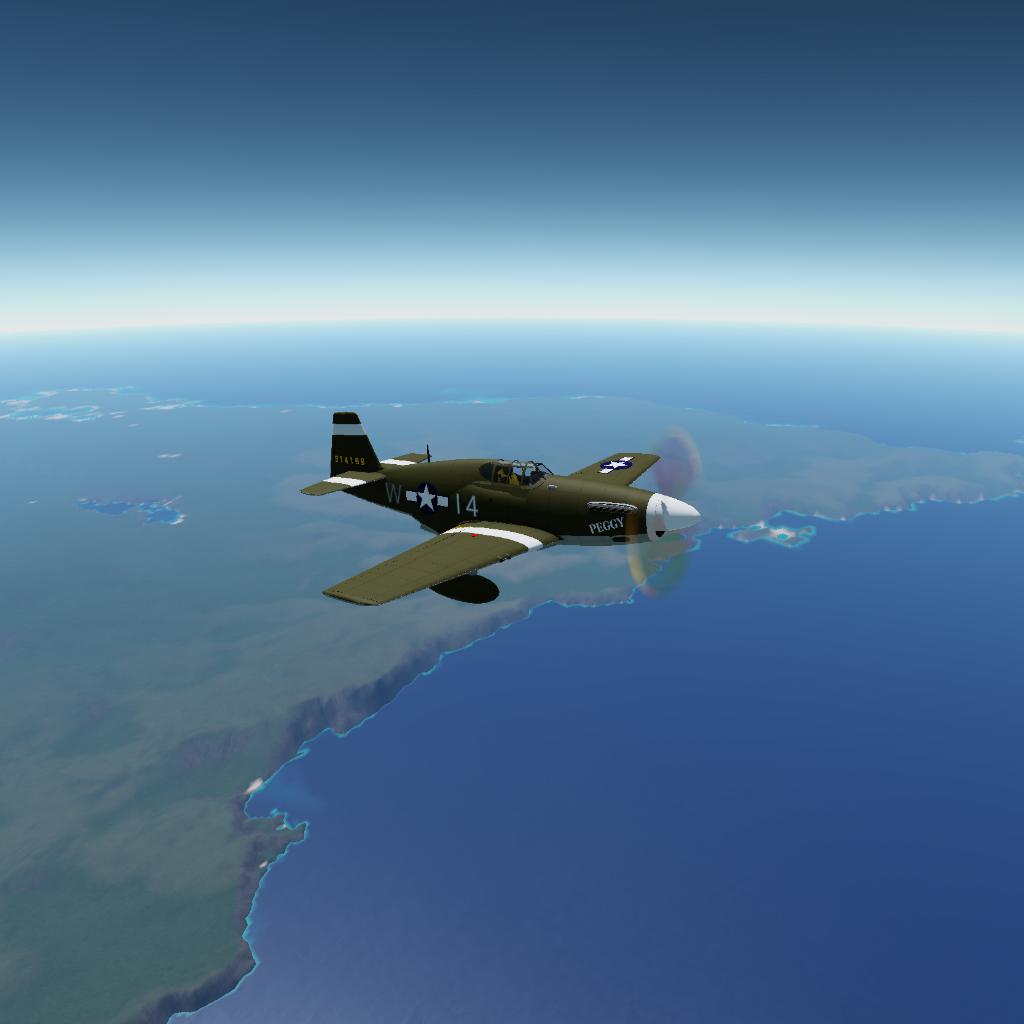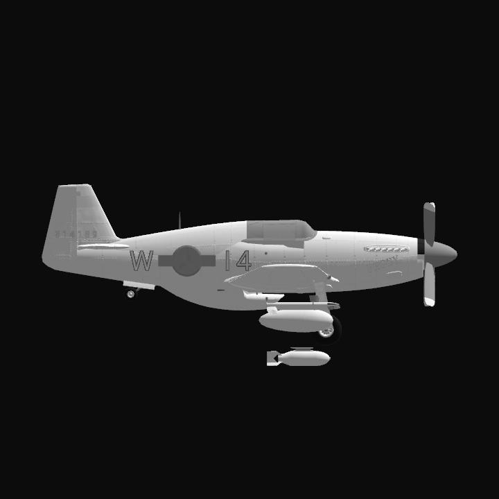Early version of the P51 Mustang, commonly used before 1944. The B model was the first mustang to be equipped with the famous Rolls-Royce Merlin engine, giving the mustang the high altitude performance needed to escort the mass formations of bombers as they pounded Germanys manufacturing. The B model is easily destinguished from the later D model by its “bird cage” canopy and sloped back. Some pilots preferred the B model over the D model because it had a slight advantage in strait line speed and maneuverability in exchange for better visibility and two more .50cal machine guns in the wings. This model is indicitive of the 335th fighter wing during the summer of 1943.