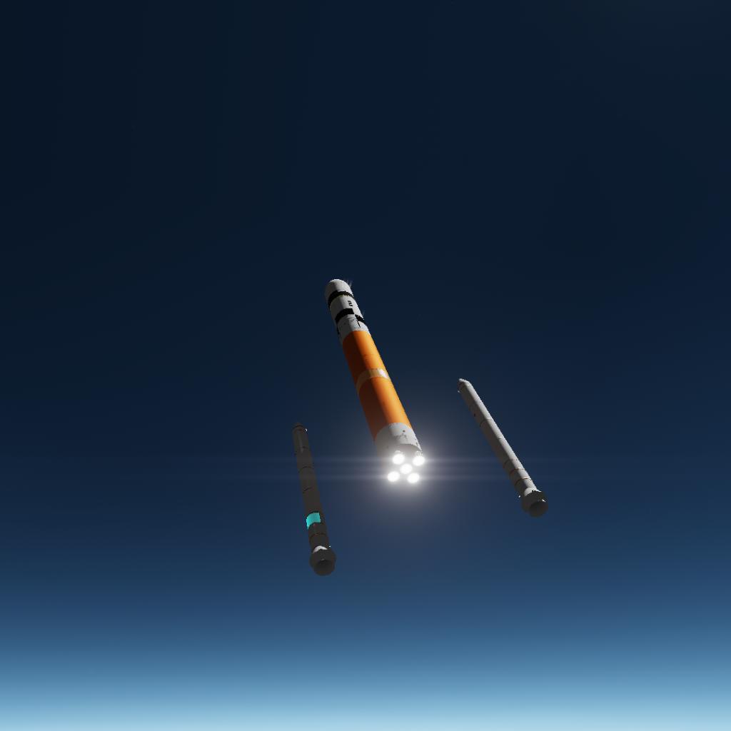 A RSS-optimized recreation of the now-cancelled Ares V, formerly the Cargo Launch Vehicle or CaLV for the Constellation Program. It was designed to launch the Altair lander to LEO and once the Orion spacecraft was docked to the Altair the Earth Departure Stage would restart and propel the stack to a trans-lunar injection. It could deliver 110 tons to LEO, quite excessive for launching lunar missions but was designed to eventually launch a crewed Mars Transfer Vehicle across many launches to fulfill Constellation's main goal, crewed missions to Mars. One proposed use for the Ares V would be to launch enormous telescopes to L2 without folding mirrors, and with folding mirrors much much larger vehicles could be launched. Enjoy my rocket! Thank you so much for reading!