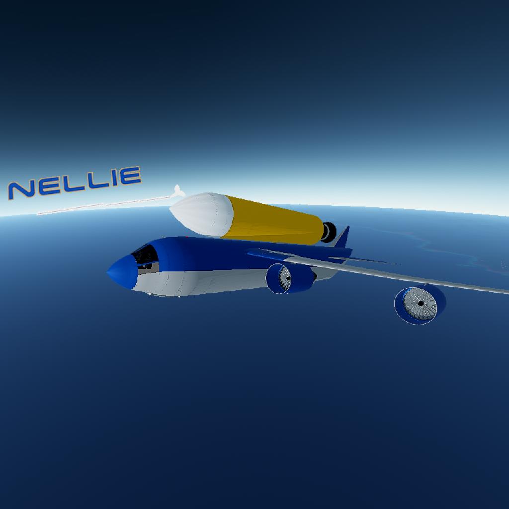 Nellie, or the JLM 3400 is a new narrow - body cargo Jetliner, modified from the 362 to be able to carry heavy cargo and small rocket sections. It's been tested to be able to carry 120 Tons on it's back before being unflyable, and over 500 Tons in it's bay before it can't take off. It's meant to serve as an everyday air transporter, and occasional heavy load. it closely resembles he JLM 362's nose, but is improved with a sleeker nose, smoother body and better aerodynamis. It's partly inspired by the Antanov AN 225 Mryia (RIP).