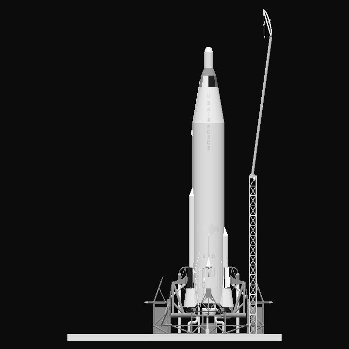 The SM-65D Atlas is the first operational version of the Atlas ICBM, also the first ICBM developed by the US, designed for use in carrying nuclear warheads in a very wide range of distance. It contains the Atlas D, which would eventually be used for many space missions with some upper stages, and the warhead, which is the G.E. Mk 2 "heat sink" re-entry vehicle with a W49 thermonuclear weapon, capable of an air burst, or bursting at contact with the ground.