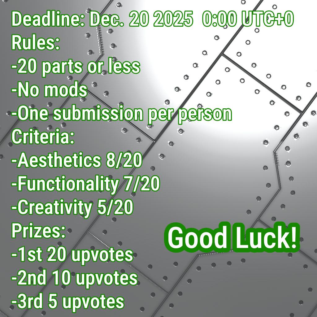 Download this craft, delete it, then build! When you upload, it should appear as a successor to this post. If this does not happen, make sure I get your craft some other way.