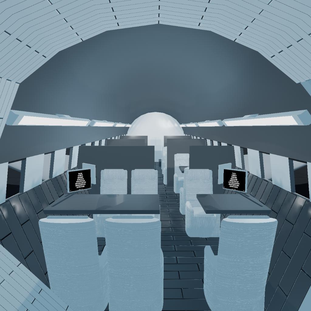 Each seat has their monitor screen, with the rear having extra legroom for the two seats. Additionally, each pair of seats has a foldable table, while the front of the cabin has a longer table on the right since there are 4 seats on the right side of the area.