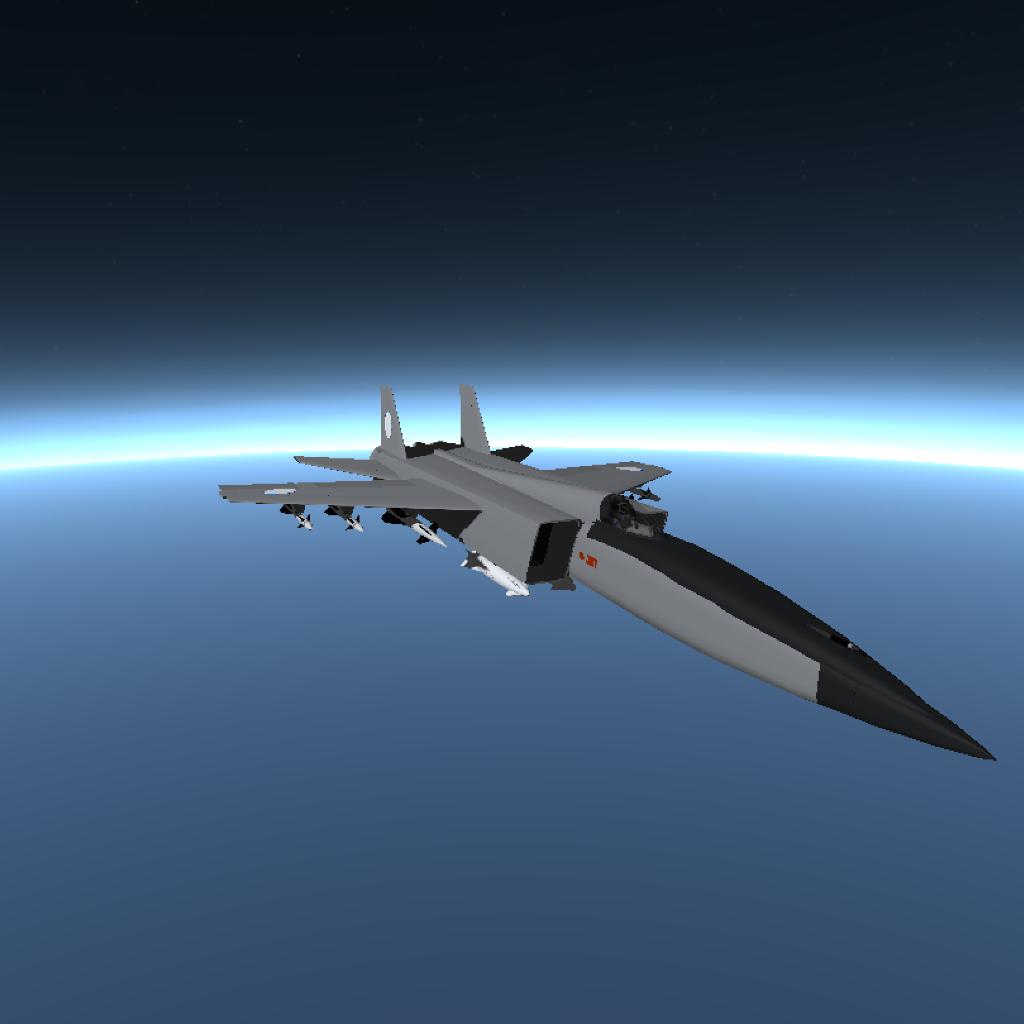 Credits go to me for making the plane itself and the details while @AlphaSpaceTechnologies deserves credit for the cannon,weapons, MFD screens and additional features such as radar,airbrakes,flaps,ground warning system and drogue chute. My inspiration for this plane came from 2 sources mainly: The Russian MIG-31 and the