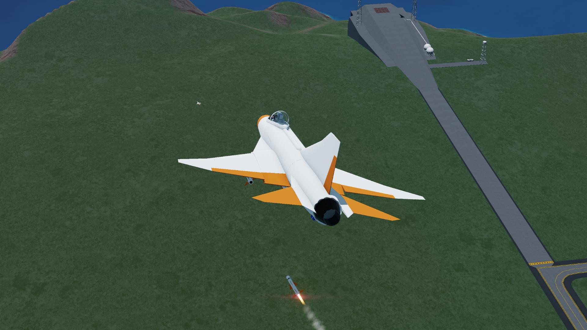 Use Slider 1 as flap. Use AG 2,3,4 to launch three of the missile. The command pod in the nose cone will broadcast whatever the craft our plane is targeting at to missiles and the missiles seek the craft on their own. You will hear a lot of beeps when you are targetting any craft and when missile is working.