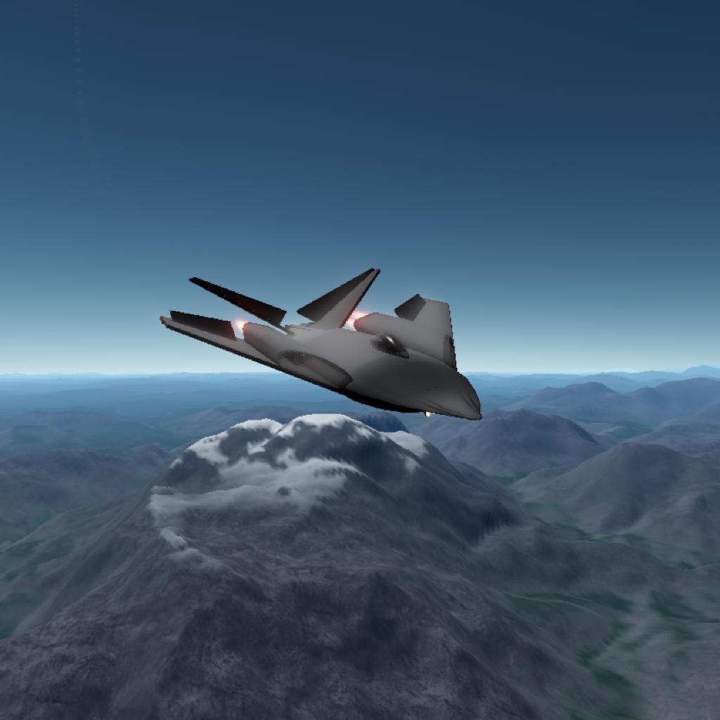 This eerodynamic jet reach a maximum speed of over 800m/s. The plane is verry easy to handle and control in every speed. Writhe the fuel you can erach every location on Droo.